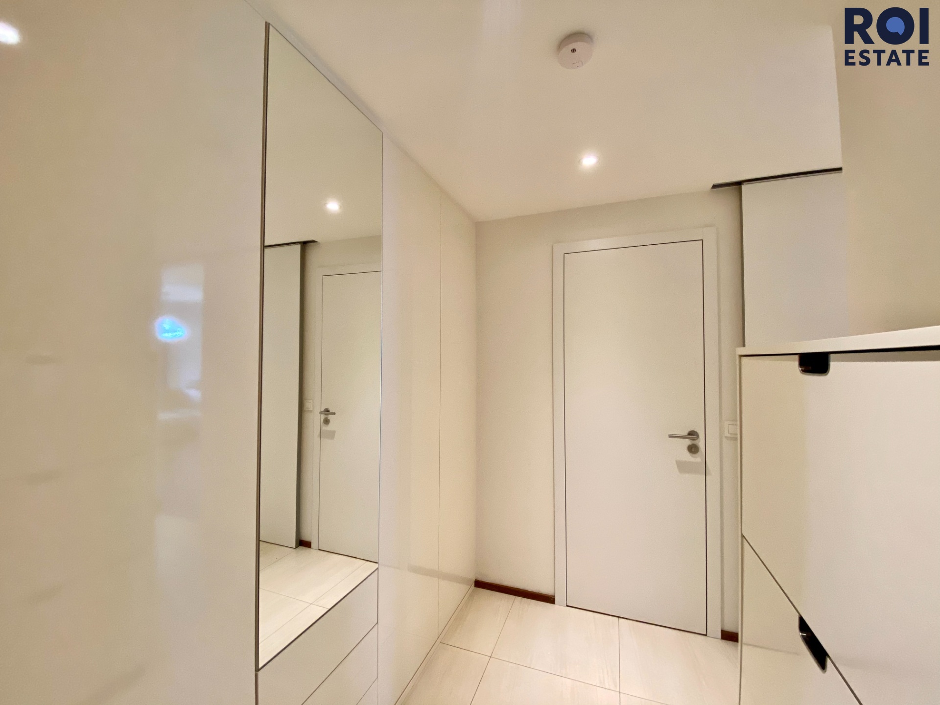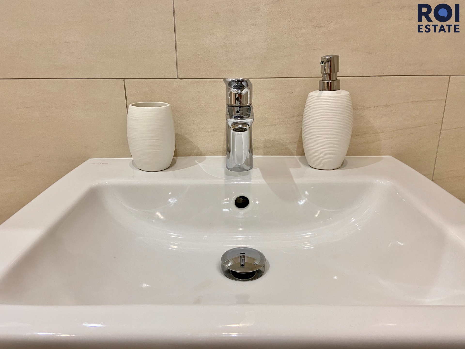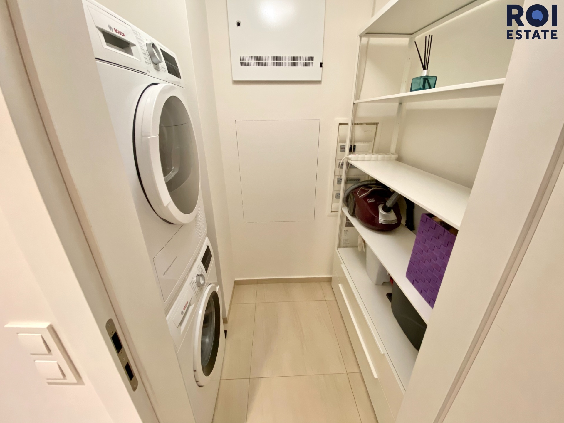 Interiér bytu byl navržen s důrazem na detail, funkčnost a moderní design. Součástí bytu je stylová koupelna, samostatná technická místnost s pračkou a sušičkou, plně vybavená kuchyňská linka a prostorný obývací pokoj s televizí. Komfortní ložnice nabízí dostatek úložného prostoru i vlastní televizi.