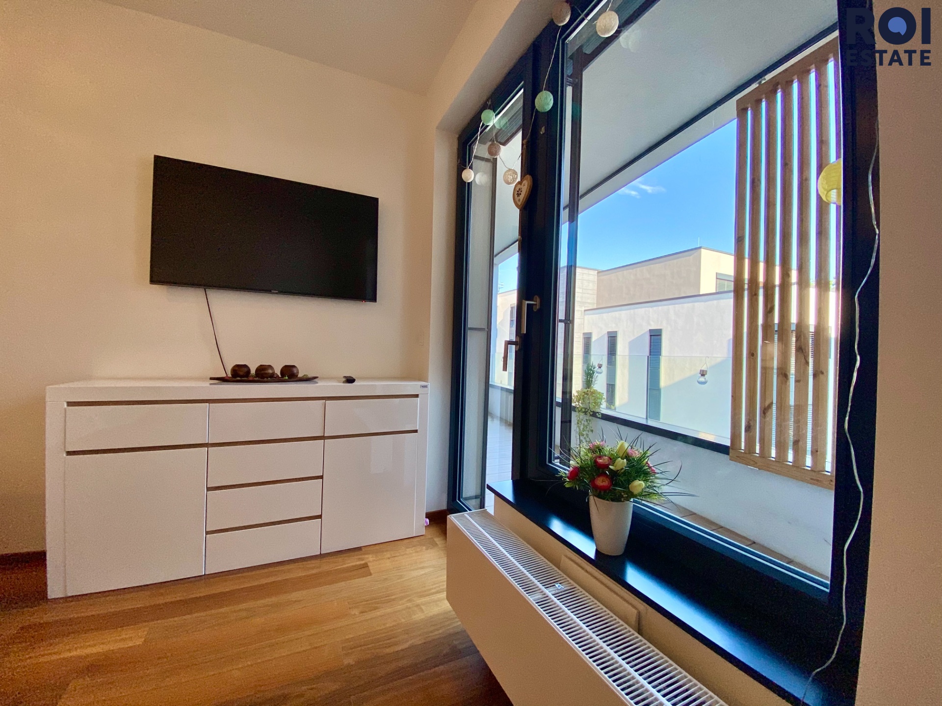 Nabízíme k dlouhodobému podnájmu elegantní a nadstandardně vybavený byt o dispozici 2+kk a ploše 70 m², situovaný v klidné a vyhledávané části Prahy 4 – Krč, v ulici U Michelského mlýna.
