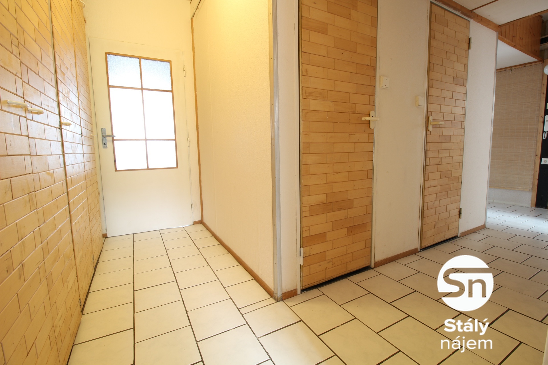 Z chodby bytu je vstup do všech nevybavených místností. Koupelna disponuje vanou. Toaleta je oddělena. První pokoj je nevybavený a je z něj vstup na balkón. Dalším pokojem je kuchyň s kuchyňskou linkou, v té naleznete elektrický sporák, elektrickou troubu, lednici s mrazákem, pračku. V kuchyni je prostor pro jídelní stůl. Třetí pokoj je nevybavený, naleznete zde však dřevěné podium, na které se dá umístit velká matrace a tento prostor pak může sloužit jako prostorná postel. V posledním pokoji naleznete dřevěnou knihovnu. Vybavení vyobrazené na fotografiích nemusí odpovídat skutečnému vybavení.