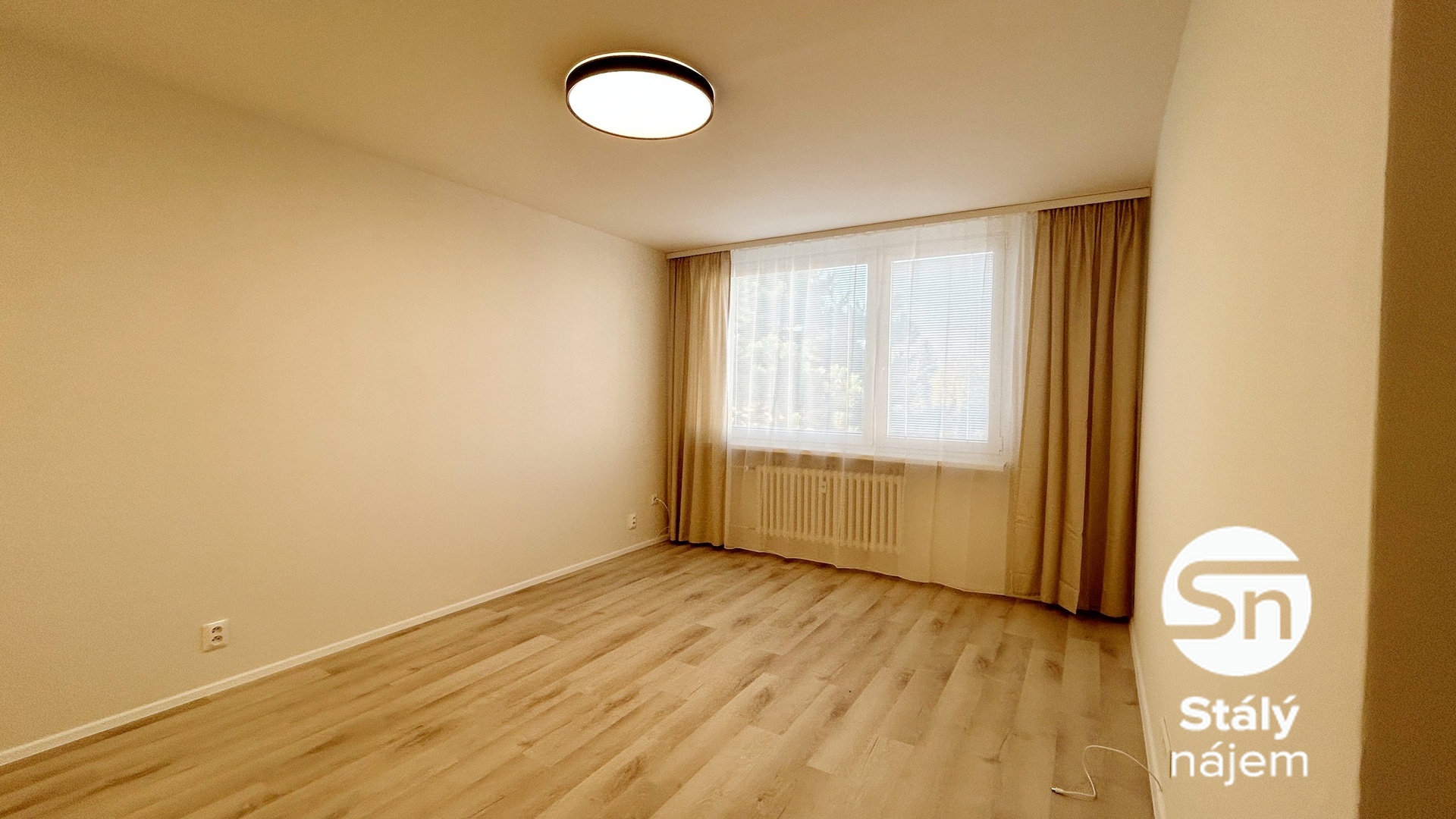 Byt prošel rekonstrukcí a působí velmi příjemným a udržovaným dojmem. Dispozici tvoří kuchyňský kout vybavený kuchyňskou linkou, elektrickým sporákem s troubou, digestoří, lednicí s mrazákem a praktickými policemi. Na kuchyň navazuje obývací pokoj se stropním osvětlením a okny se žaluziemi i závěsy, který poskytuje dostatek prostoru pro rodinné posezení.