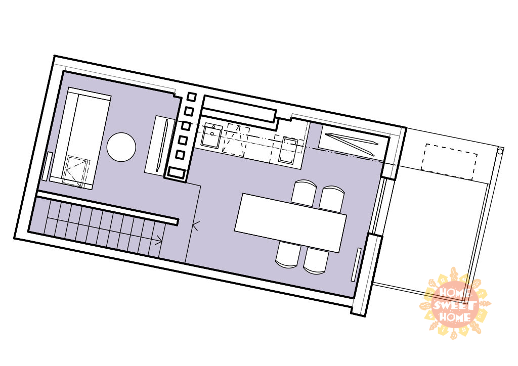 Ve spodním patře se nachází dvě ložnice, koupelna se sprchovým koutem a zvlášť toaletou. V horním patře je obývací pokoj a plně vybavená kuchyň se vstupem na prostornou terasu. Součástí domu je recepce. V ceně poplatků je zahrnuta energie, vysokorychlostní Wi-Fi, 68 televizních kanálů, svoz odpadu, úklid společných prostor. Byt je také vybaven klimatizační jednotkou. Možnost pravidelného úklidu a výměny ložního prádla za jednorázový poplatek.