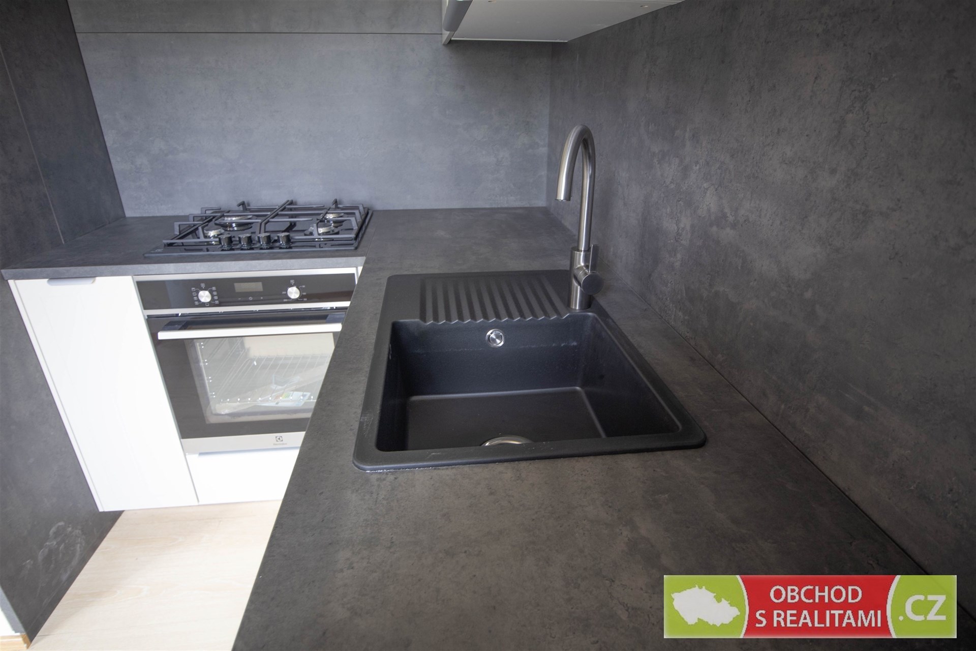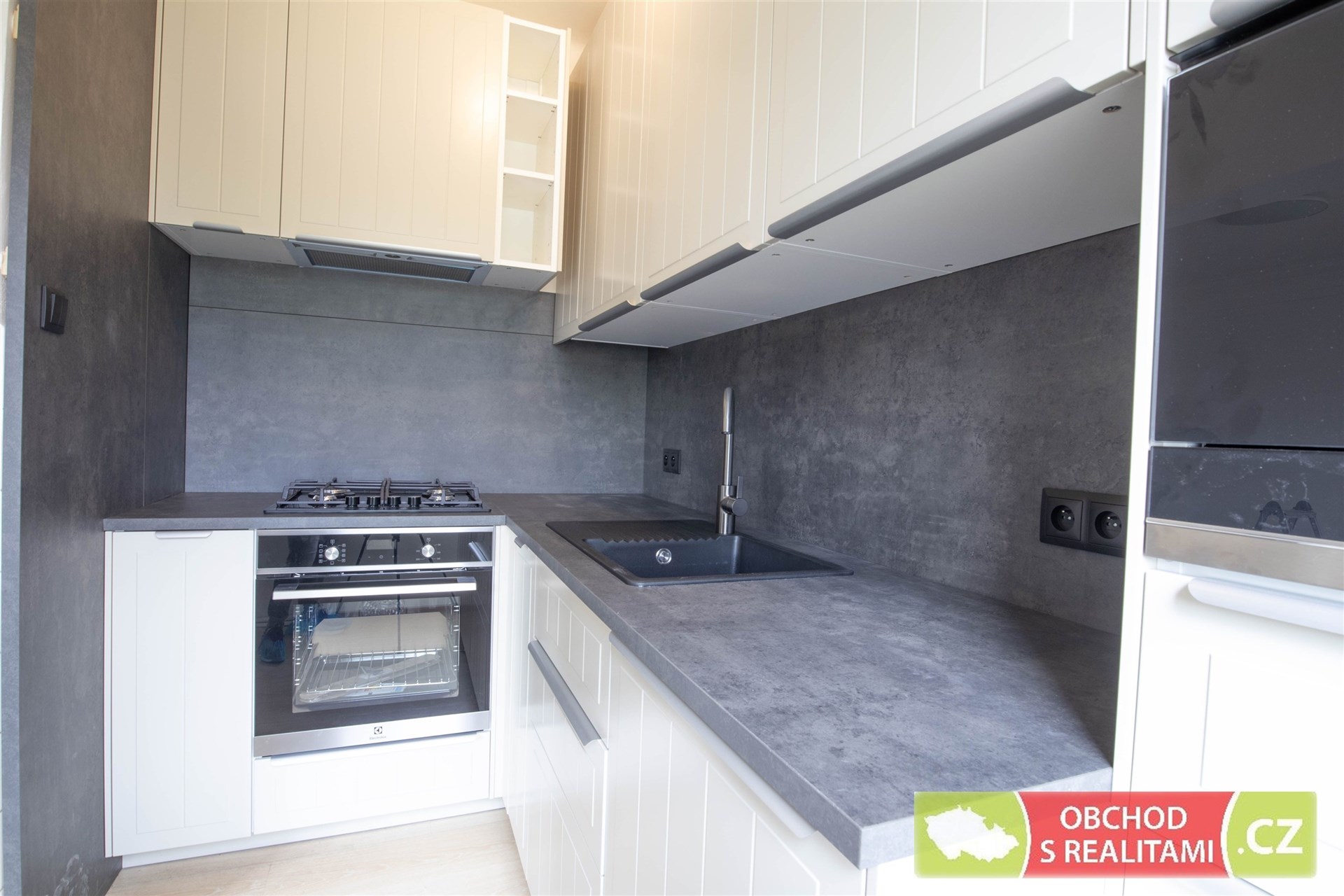 Vybavením bytu je kuchyňská linka s myčkou nádobí, elektrickou troubou, plynovou deskou a mikrovlnnou troubou, jinak je byt pronajímán jako nezařízený!