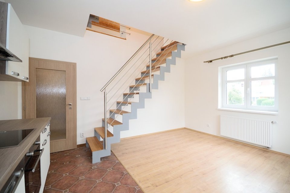 Nabízíme k pronájmu světlý, nezařízený mezonetový byt 3+kk o celkové ploše 68 m² s balkonem a prostornou terasou o velikosti 30 m², situovaný v rezidenční lokalitě Praha 8 – Kobylisy, ulice Hovorčovická. Byt se nachází ve 3.nadzemním podlaží cihlového domu bez výtahu. Dům je zateplený. Byt byl kolaudovaný v roce 2018. V dolním patře se nachází vstupní chodba, pokoj s kuchyňskou linkou, ložnice s balkonem a koupelna. V horním patře je pokoj a schodiště do 5. patra kde je vstup na terasu s krásným výhledem do okolí. Byt je vybavený kuchyňskou linkou s vestavěnými spotřebiči (lednice s mrazákem, elektrický sporák se sklokeramickou deskou). V koupelně je k dispozici vana a toaleta. Vytápění je zajištěno centrálním plynovým topením.