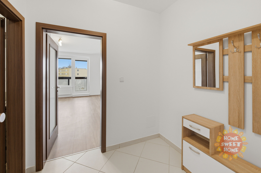 Světlý, částečně vybavený byt 1+kk o rozloze 31m2 s lodžií 5m2 se nachází v 5. patře novostavby (kolaudace v roce 2018) s výtahem v ulici Makedonská, Praha 9. Sestává z menší vstupní chodby vybavené botníkem a věšákem, pokoje s kuchyňským koutem (lednice, elektr.trouba, digestoř, myčka), šatní skříní a jídelním stolem. Z pokoje je vstup na lodžii, dále je zde koupelna se sprchou, pračkou a toaletou. Podlahy obytného pokoje plovoucí podlaha, v předsíni a koupelně dlažba, kvalitní protihluková plastová okna.