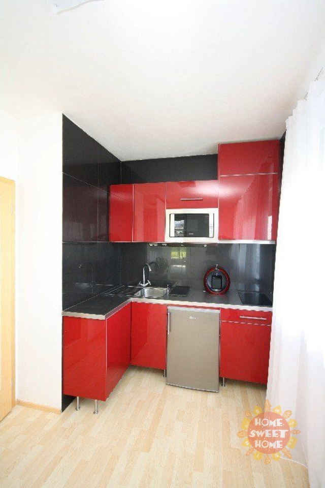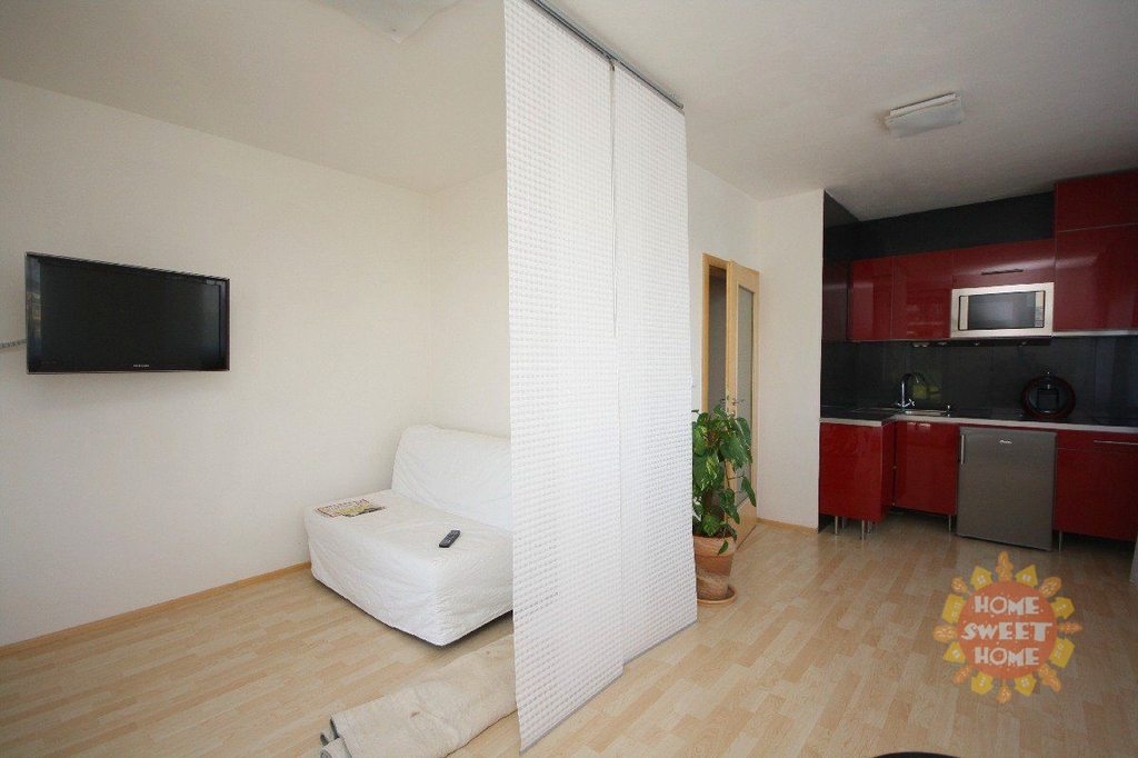 Krásný částečně zařízený rohový byt 1+kk k pronájmu o celkové rozloze 43 m2 s terasou (15m2) a sklepní kójí se nachází v přízemí novostavby na Praze 5 - Zličín. Byt je orientovaný na sever a východ s dopoledním sluncem. Byt má zcela novou stylovou kuchyňskou linku se sklokeramickou dotykovou deskou, mikrovlnnou troubou s grilem, lednicí, dřezem, odsavačem par a automatickou pračkou. Koupelna se sprchovým koutem, toaleta samostatně. Topení je centrální s možností regulace. Na podlahách jsou plovoucí podlahy (světlý ořech) a dlažba. Pokoj je vybavený postelí, LED TV, zahradním nábytkem a dálkově ovládanými venkovními žaluziemi. Venkovní vchodové dveře otevíráte domácím telefonem z apartmánu. Dům se nachází v klidné lokalitě s krásným výhledem na na přistávací plochu letiště Ruzyně. Je zde dobrá občanská vybavenost - restaurace, sportovní hala (tenis), OC Metropole Zličín, bankomaty, mateřská školka, základní škola. I dopravní dostupnost metro "B" Zličín do 10 minut chůze.
