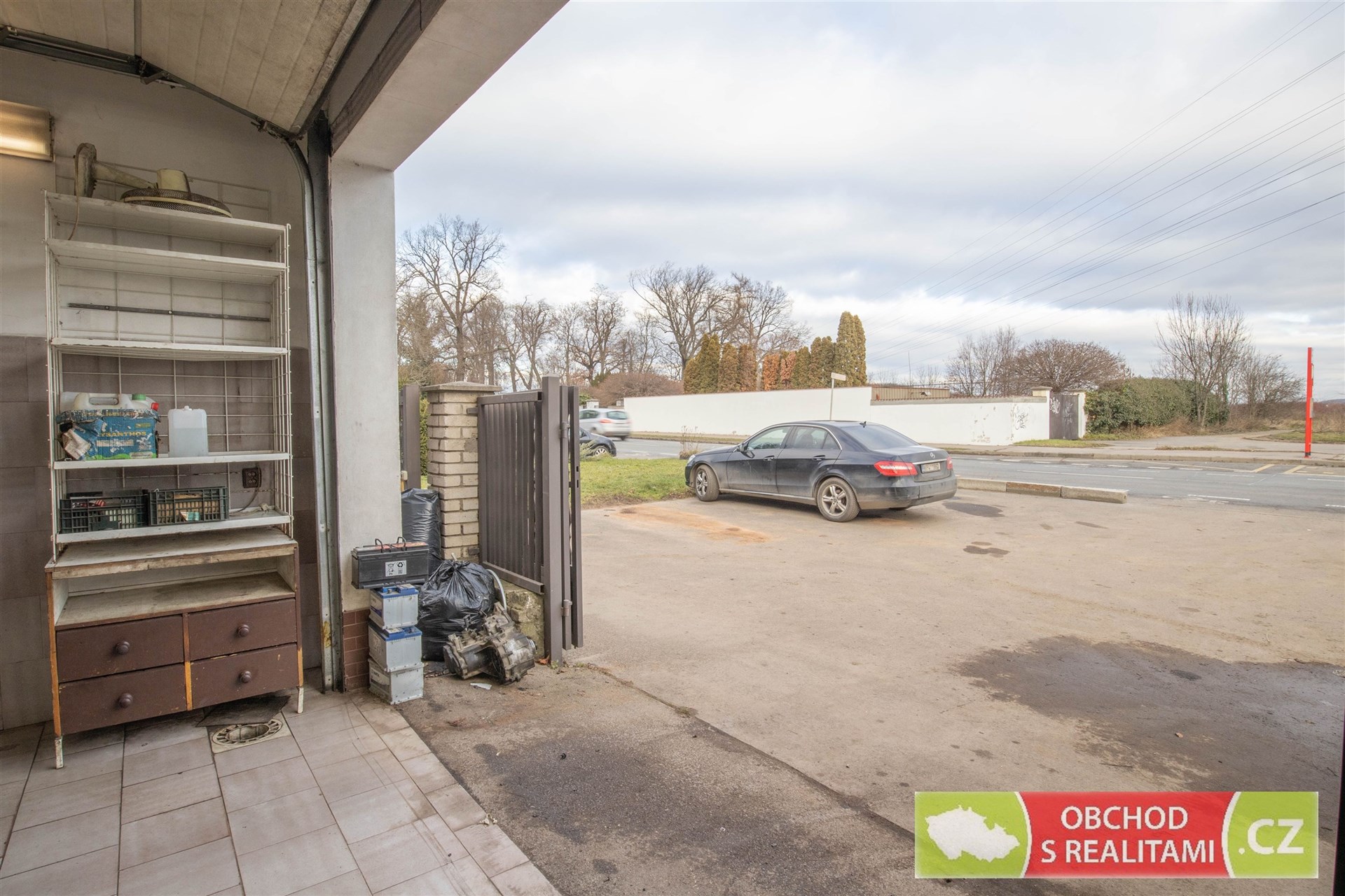 Rozměr garážových vrat a rozměr obchodního prostoru je uveden v přiloženém plánku. Obvykle volná parkovací plocha na veřejném pozemku před objektem.