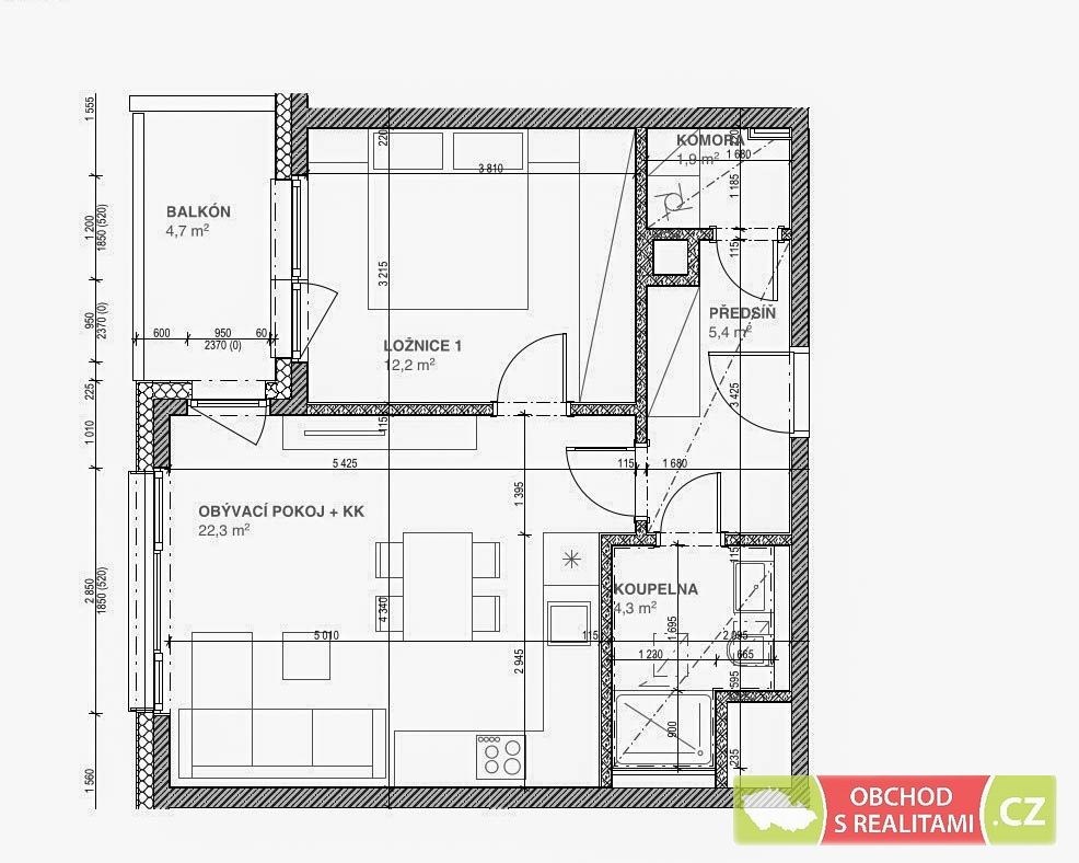 Dispozice bytu:2+kk