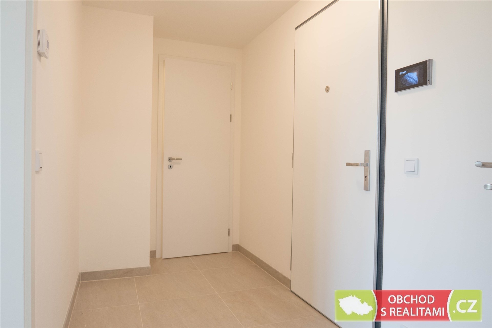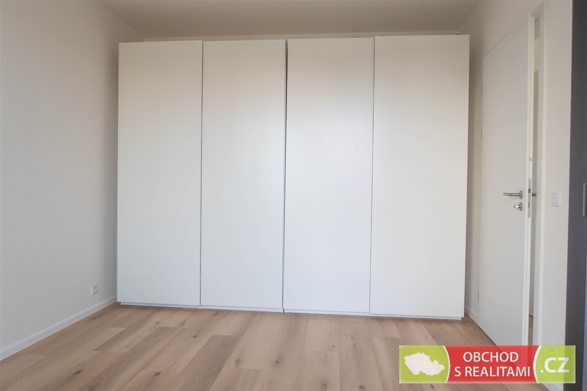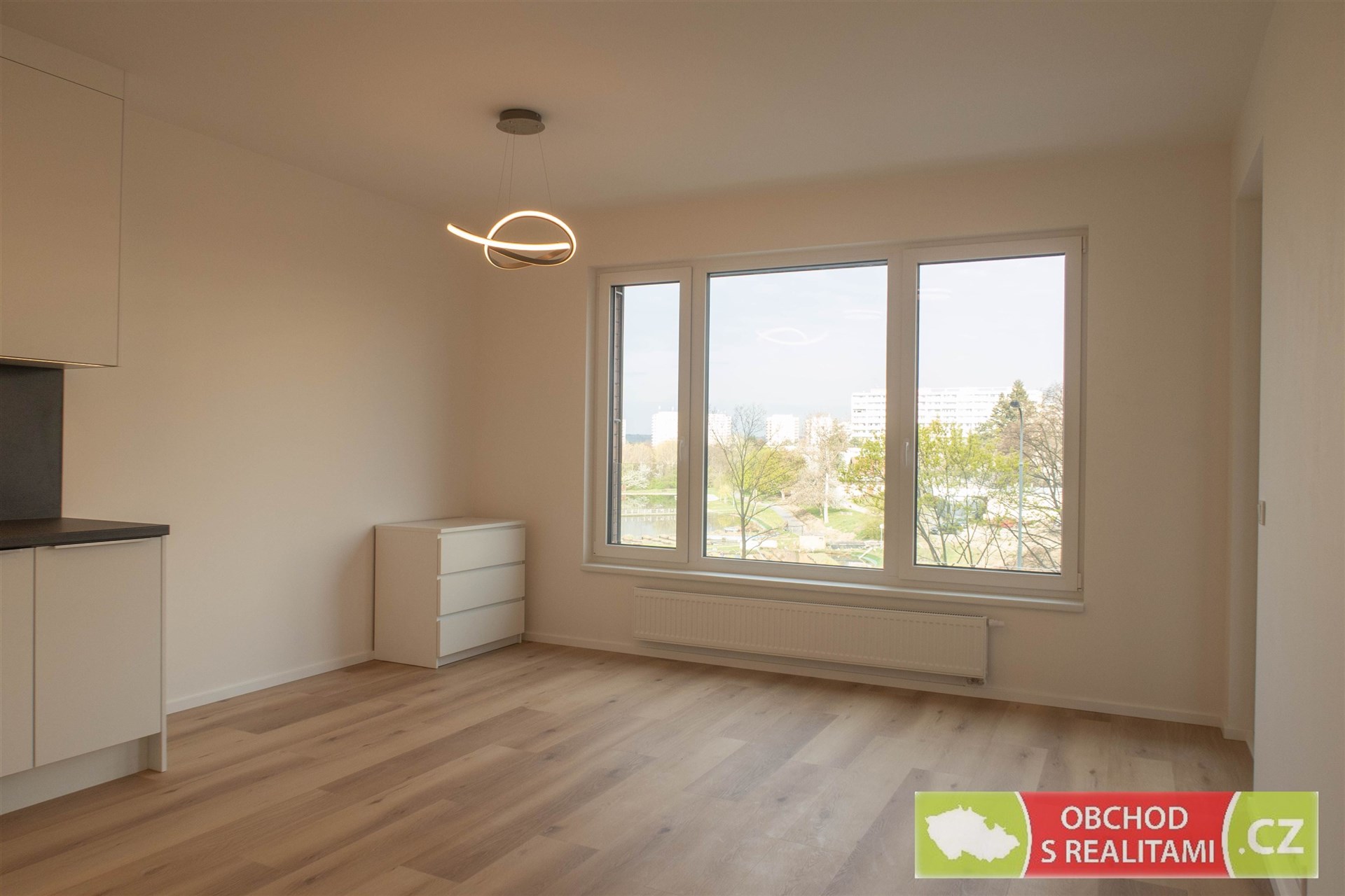 Obývací pokoj je vybaven moderní kuchyňskou linkou se všemi spotřebiči zn. AEG (myčka nádobí, indukční varná deska, pečící trouba, kombinovaná chladnička, digestoř) a bílou komodou. V ložnici se nachází velká šatní skříň. Byt bude dovybaven pračkou se sušičkou umístěnou v komoře bytu. V koupelně se nachází velkorysý sprchový kout. Podlahovou krytinou v pokojích je vinyl.