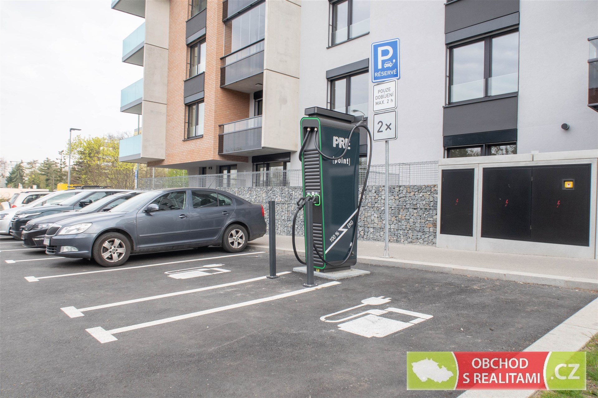 K bytu náleží sklep o rozloze 3 m² a garážové stání, které po dohodě může být osazeno wallboxem pro nabíjení elektromobilu. V suterénu domu je možnost využití kolárny / kočárkárny pro uskladnění kol a dále samostatnou místnost pro mytí kol / psů. Pro zvýšení bezpečnosti a pohodlí je dům vybaven bytovými videotelefony, přes které je možné otevřít i vjezd do garáže.