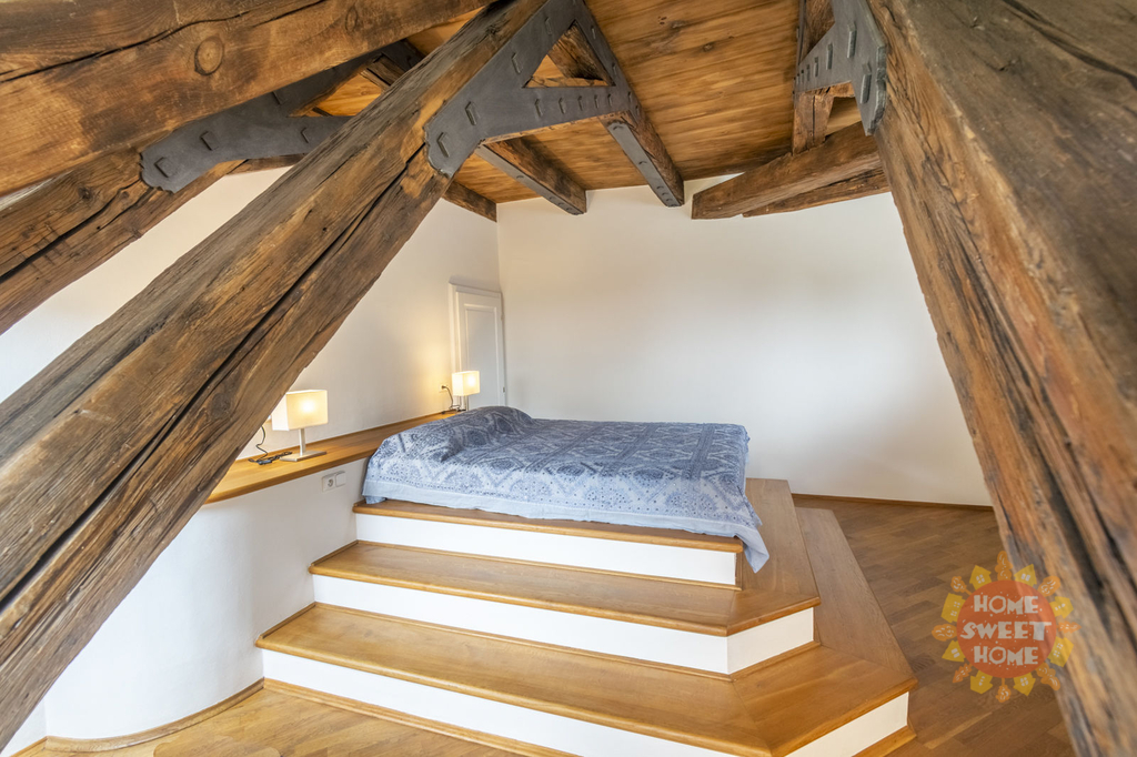 Dovolujeme si Vám nabídnout k pronájmu kompletně zařízený byt 4+1 s výjimečnou, nezaměnitelnou až magickou atmosférou, ve třetím patře neuvěřitelně krásného historického domu s výtahem ( byt má vlastní vstup do výtahu). S kouzelným přístupem přes téměř rajský dvoreček, s krásnými stromy a fontánkou.
