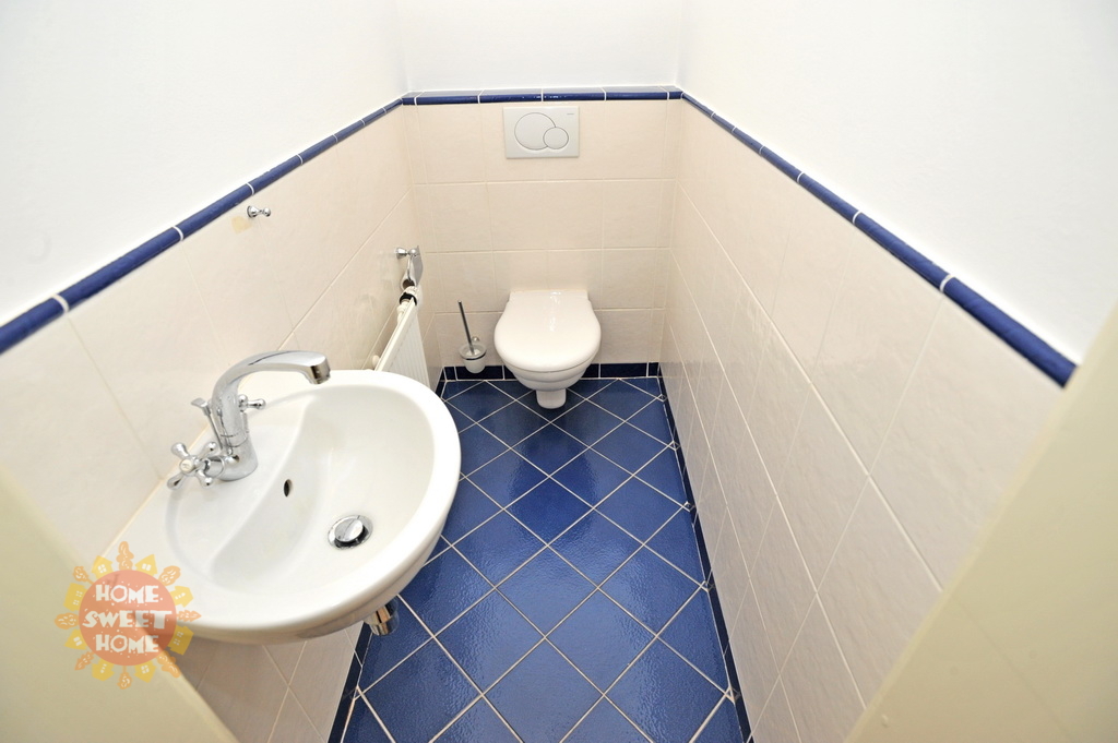 prostorná vstupní chodba, obývací pokoj částečně propojený se samostatnou kuchyní s jídelním prostorem, kuchyňská linka vybavená všemi spotřebiči (plynový sporák, trouba, mikrovlnka, myčka a lednice), ložnice, šatna, koupelna s vanou a toaletou, další toaleta samostatně.