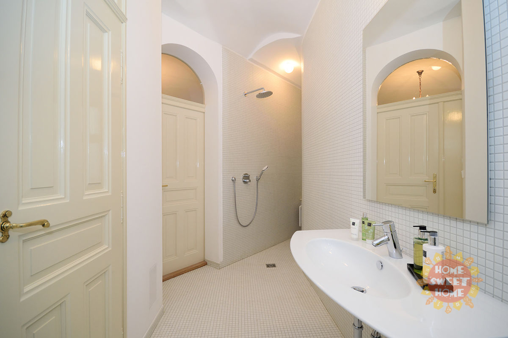 Světlý prostor v centru Prahy se skládá ze dvou samostatných místností ( větší místnost má zimní zahradu), haly s kuchyňskou linkou plně vybavenou (sklokeramická deska, elektrická trouba, myčka, lednice s mrazákem, digestoř), koupelna se sprchovým koutem a toaleta je samostatně, K dispozici je alarm, samostatné plynové topení a podlahy tvoří mramor.