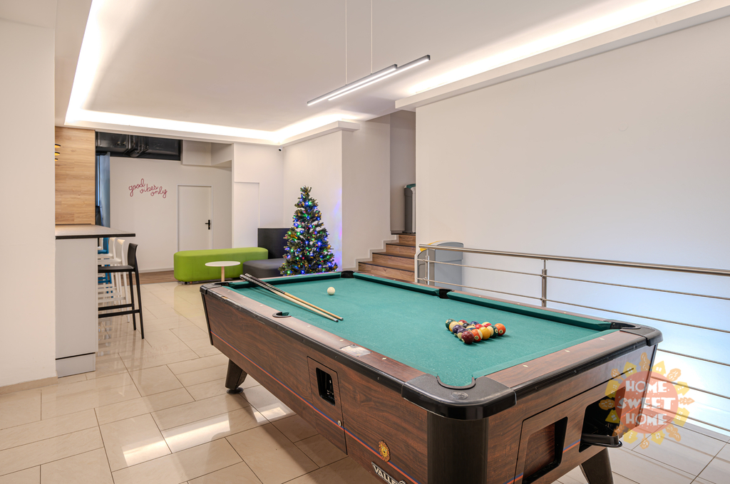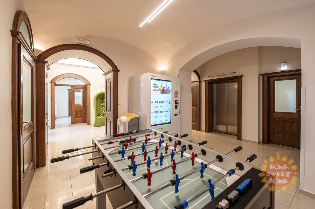 Rezidence poskytuje plné vyžití pro volnočasové aktivity, tak pro společné setkávání a budování komunity. V budově naleznete fitness centrum (vybavená posilovna a venkovní fitness zázemí), natáčecí a hudební místnost, herna s pingpongovým stolem a kulečníkem, venkovní grilování, prádelna (za příplatek) a společná prostorná kuchyně s jídelním koutem. Toto bydlení je ideální volbou pro studenty, kteří hledají kvalitní a dostupné ubytování v blízkosti škol a dalších důležitých bodů v Praze. Rezidence se nachází pouhých 5 min. od stanice metra linky B - Palmovka.
