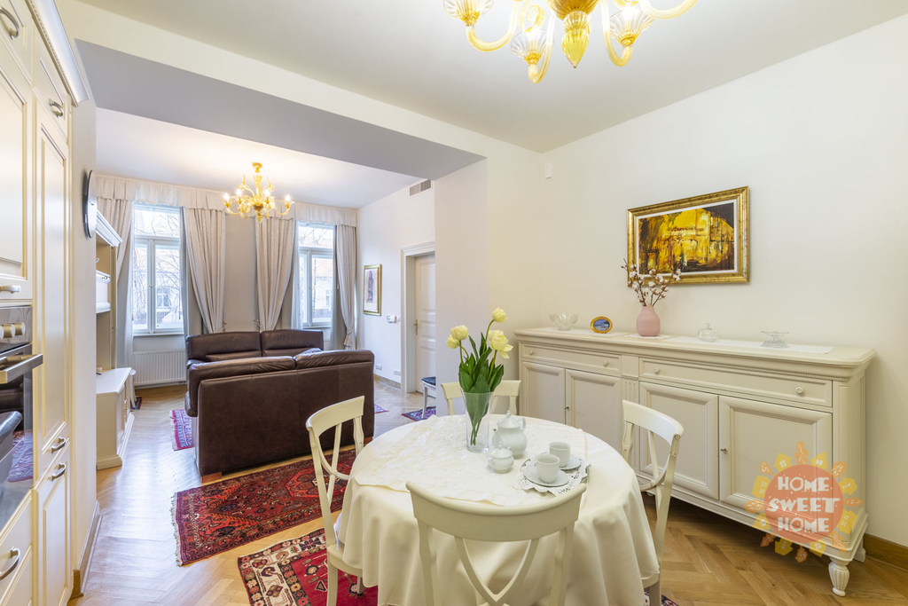 Luxusní, komfortně zařízený, plně klimatizovaný byt 2+kk, 72 m2, v prvním patře s výtahem v prestižním, kompletně zrekonstruovaném novorenesančním domě s nonstop recepcí v rezidenční lokalitě nedaleko Riegrových sadů, Italská, Praha 2 - Vinohrady. V bytě je vstupní hala s úložnými prostory, velký obývací pokoj s plně vybavenou kuchyňskou linkou (digestoř, sporák, pečící trouba, myčka, lednice, pračka). Dále samostatná ložnice, koupelna s rohovou vanou, toaletou, bidetem, pračkou a sušičkou, praktická šatna. Kvalitní dřevěné parketové podlahy v kombinaci s dlažbou. Bezpečnostní dveře, video interkom, satelitní TV, krásná zahrada s vyhřívaným venkovním bazénem s vodní masáží a saunou, venkovní grilování, možnost pronájmu parkováním v podzemních garážích, veškerý komfort pro pohodlné a příjemné bydlení. Skvělá občanská vybavenost i MHD spojení.