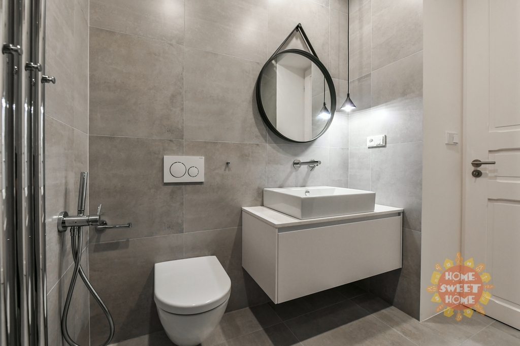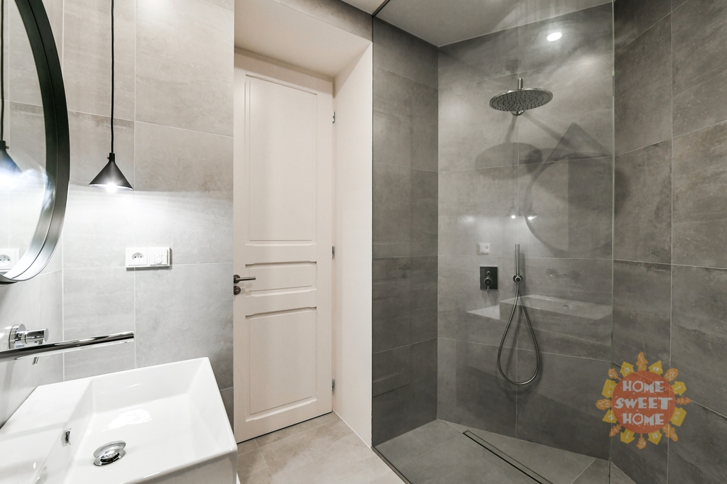 vstupní chodba s vestavěnými skříněmi, obývací pokoj s kuchyní a jídelním prostorem, hlavní ložnice s koupelnou (sprchový kout a toaleta), druhá ložnice se šatnou, další koupelna se sprchovým koutem a toaletou, technická místnost a toaleta pro návštěvy.