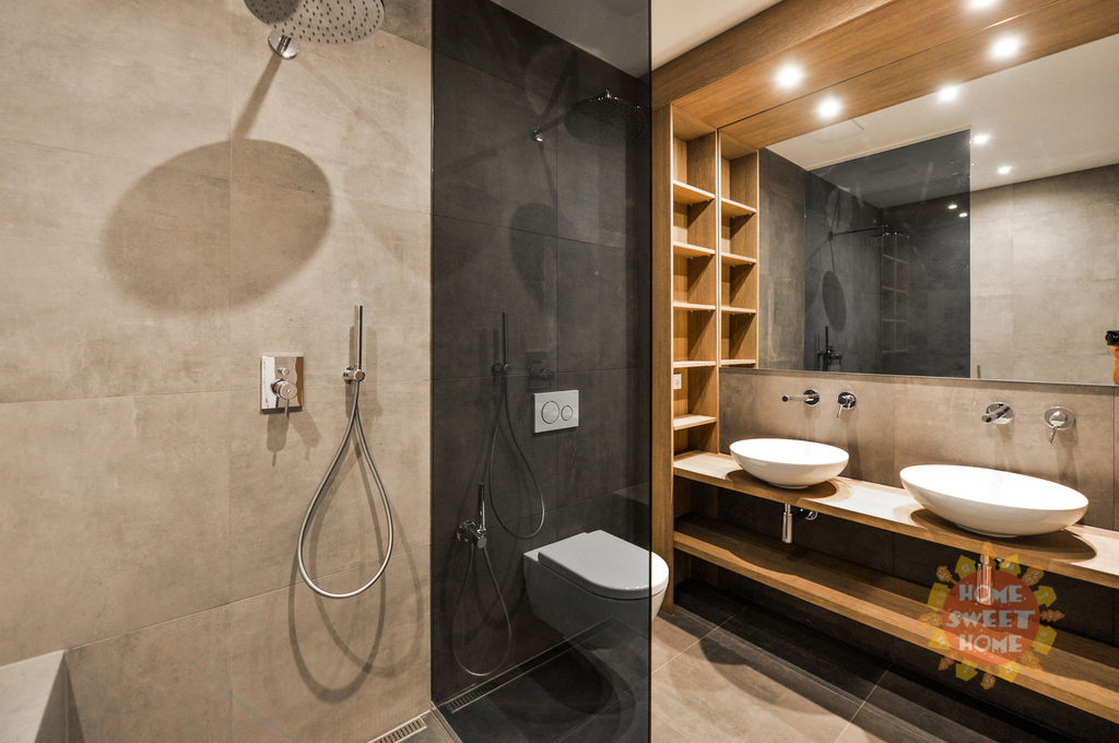 Dostatek úložného prostoru – 2 x šatna, sklep, vestavěné skříně, klimatizace. V bytě použity kvalitní materiály, dubové parkety, designová dlažba, plynový kotel, bezpečnostní dveře. K dispozici pračka/sušička.