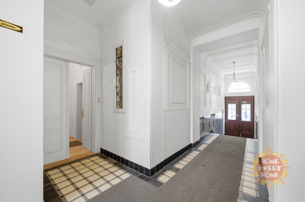 Nezařízený byt 2kk po rekonstrukci o rozloze 51,85 m2 se nachází ve zvýšeném přízemí secesního domu: