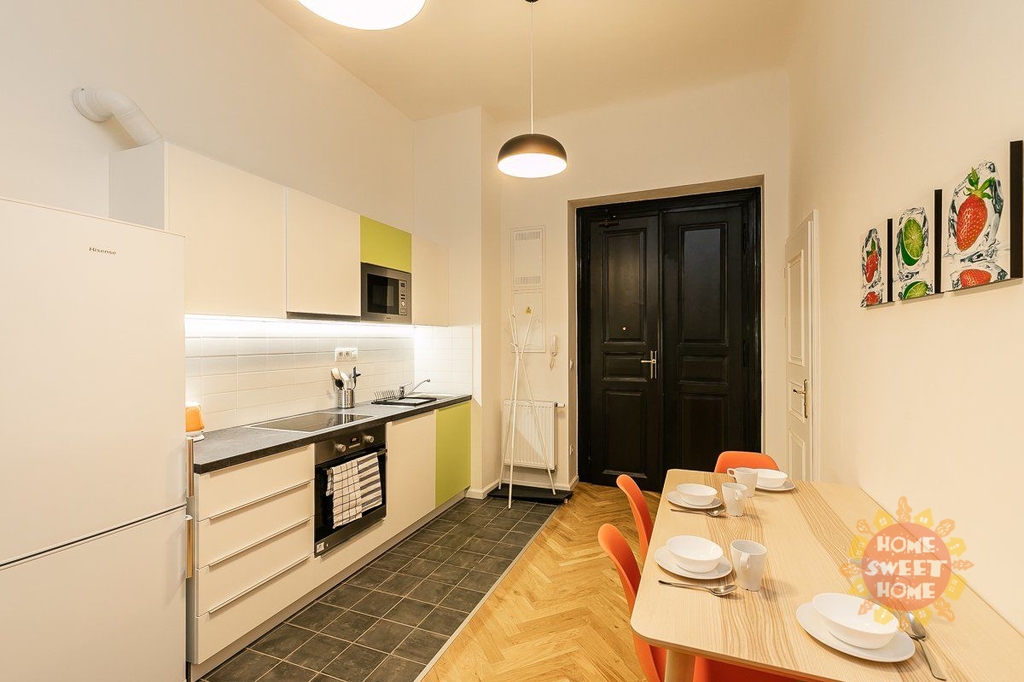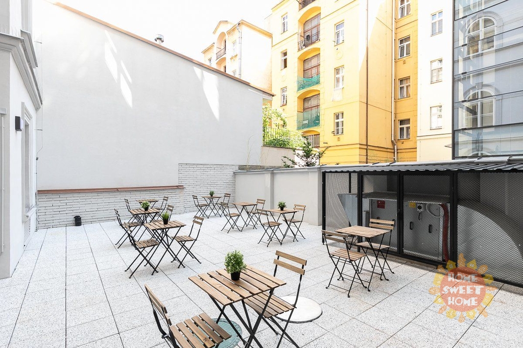 Nabízíme krásný, plně zařízený pokoj o velikosti 14 m² s patrem na spaní, který se nachází v 1. patře cihlového domu v rezidenci Kinských na náměstí Kinských, Praha 5. Dům prošel kompletní rekonstrukcí v roce 2019. Pokoj je součástí čtyřpokojového bytu s plně vybavenou kuchyní, jídelním koutem, dvěma koupelnami a samostatnou toaletou. Společné prostory jsou kompletně vybaveny včetně žehličky, úklidových pomůcek a dalších potřeb pro běžný provoz. Samotný uzamykatelný pokoj je vybavený pracovním stolem, šatní skříní, přikrývkou a polštářem. Internet a úklid společných prostor (1× týdně) jsou již zahrnuty v ceně nájmu. Nájemníkům je dále k dispozici fitness, prádelna (na mince) a společná terasa.