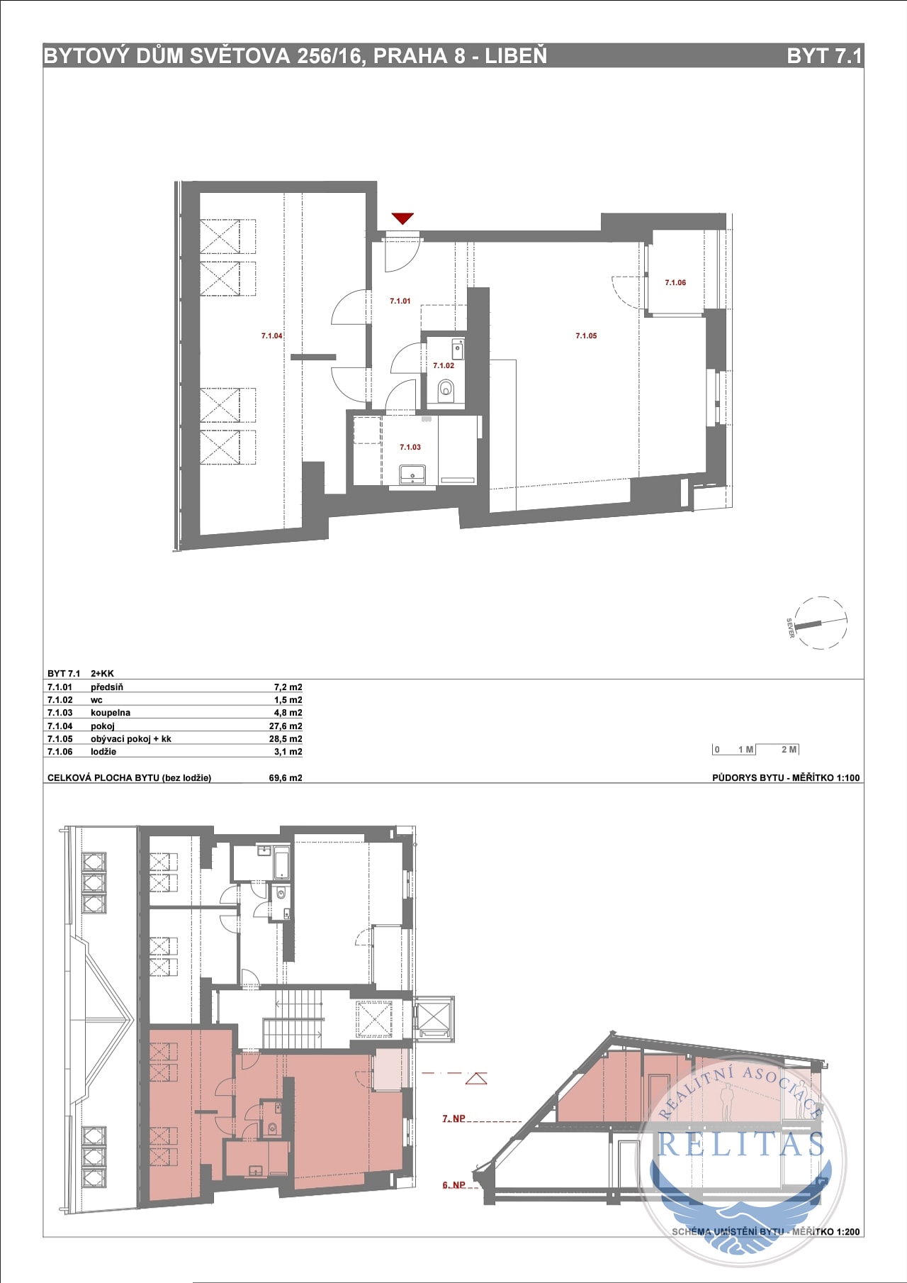 K pronájmu nabízíme zcela nový, dosud neužívaný byt 2+kk o ploše 69,6 m² s balkonem 3,1 m², situovaný v kompletně zrekonstruovaném bytovém domě ve vlastnictví majitele na adrese Světova 16.