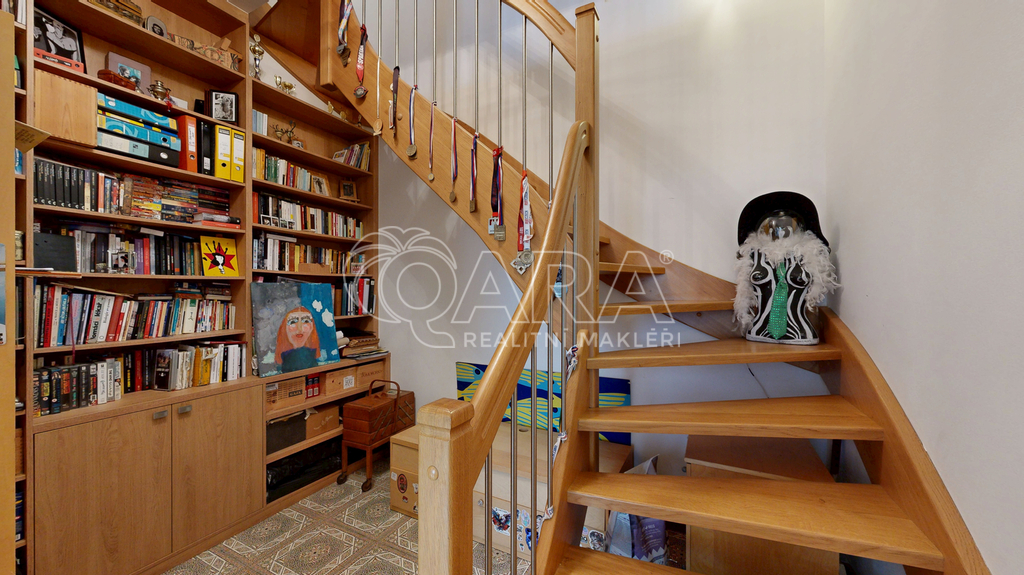 Ručně vyráběné mozaiky v kuchyni i na parapetech, práce se dřevem, krbová kamna, promyšlené detaily, které nepůsobí okázale, ale přirozeně. Velkorysá knihovna, chytré úložné prostory, světlo proudící do dvorního ticha – všechno dohromady vytváří harmonii, která se dnes hledá jen těžko.