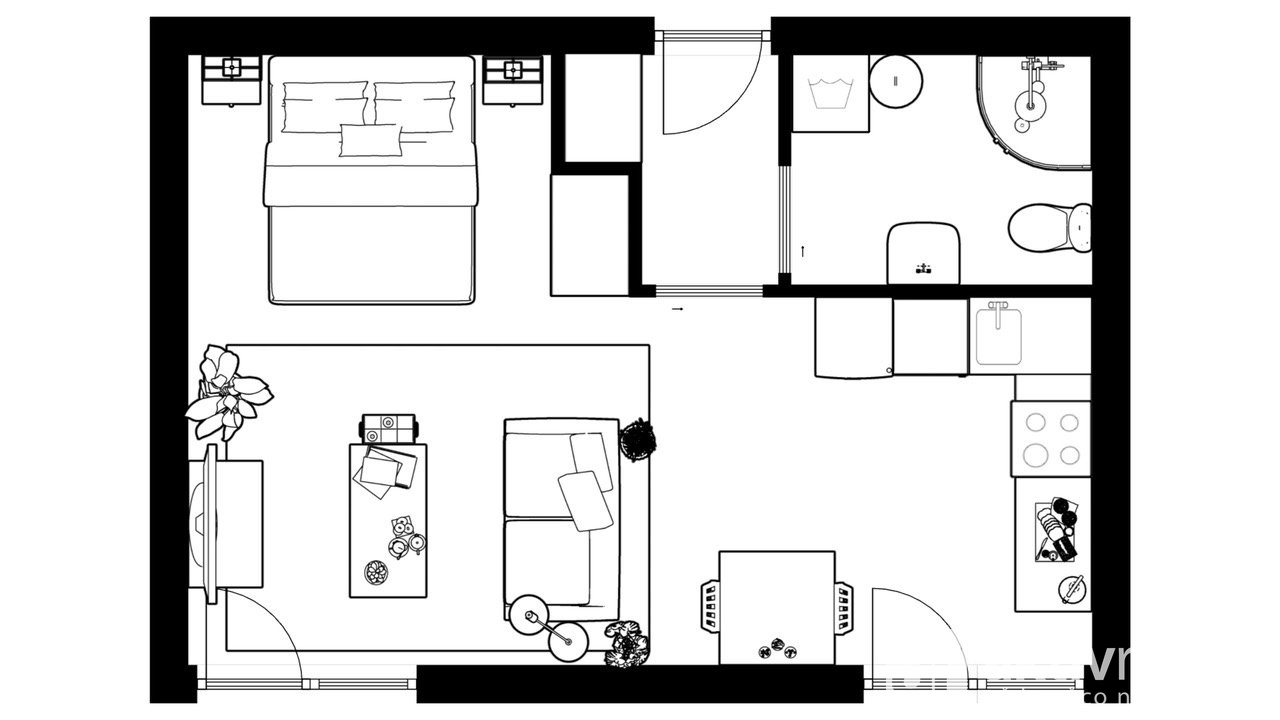 Dispozice bytu:1+kk