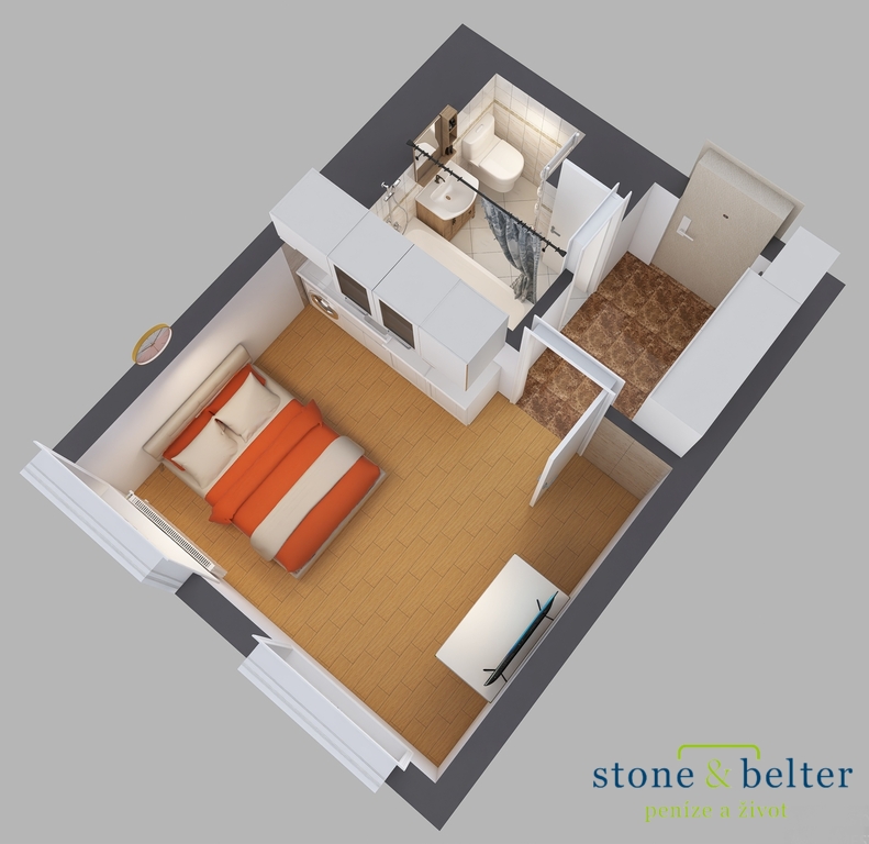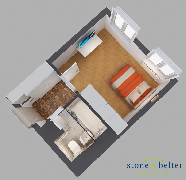 | Dispozice/podlahová plocha: | 1+kk/20 m² |