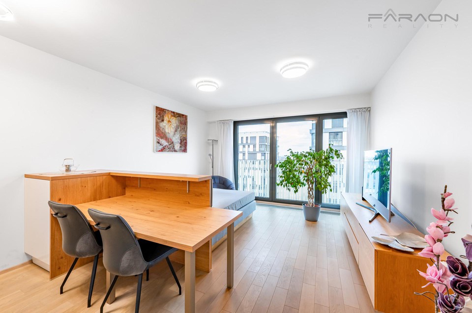 Prodej bytu 1+kk, klimatizace, parkovací místo, sklep, Garden Tower, Olšanská, Praha 3 - Žižkov
