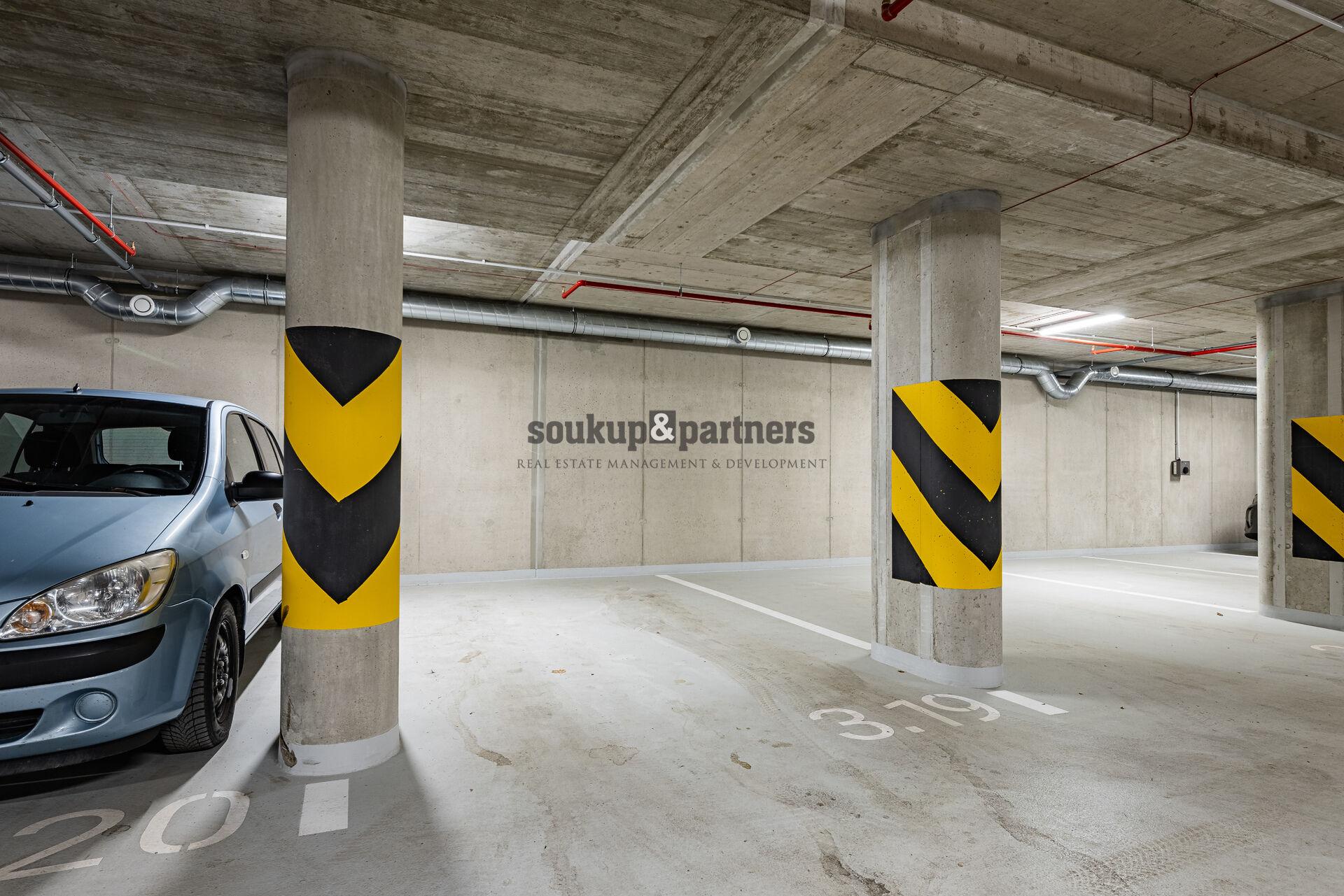 Součástí nabídky je garážové stání v podzemních garážích domu, které je možné odkoupit současně s bytem (není zahrnuto v uvedené ceně).