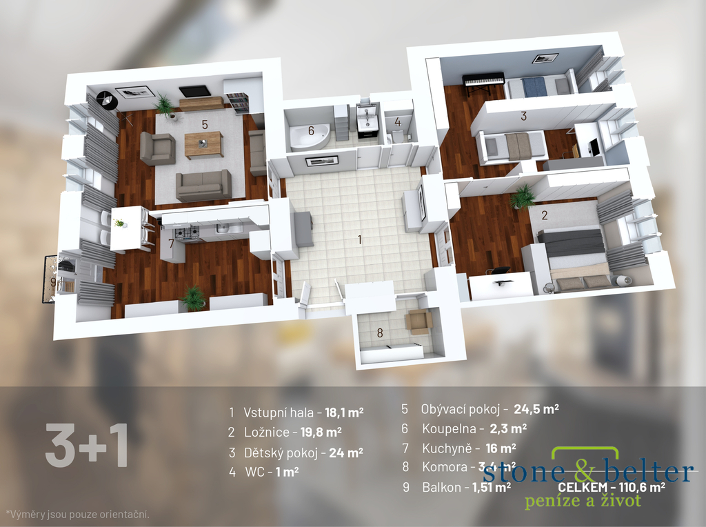 | Dispozice/podlahová plocha: | 3+1/109 m² |