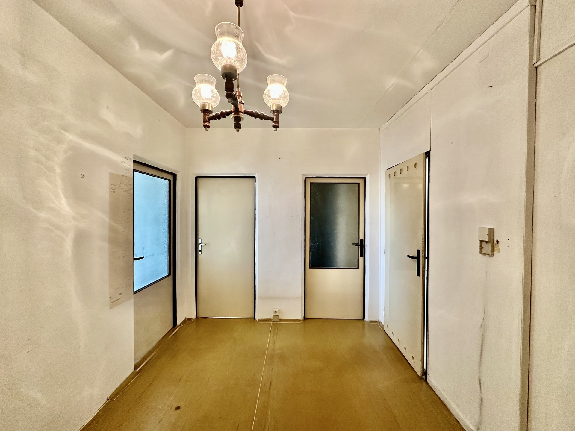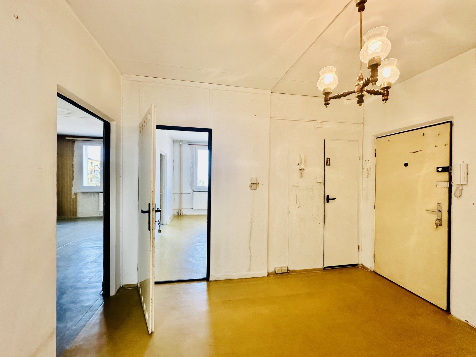 Obývací pokoj 20,3m² ložnice 18,5 a 18,1m² kuchyň 10,9m², předsíň 7,8m², koupelna 2,6m², samostatné WC 1m², lodžie 5,4m², sklep 1,2m². Kuchyně je průchozí přes ob. pokoj i chodbu, další dva pokoje pak mají samostatné vstupy přímo z hlavní chodby bytu. Okna v plastu, prosluněná zasklená lodžie s výhledem do okolí.