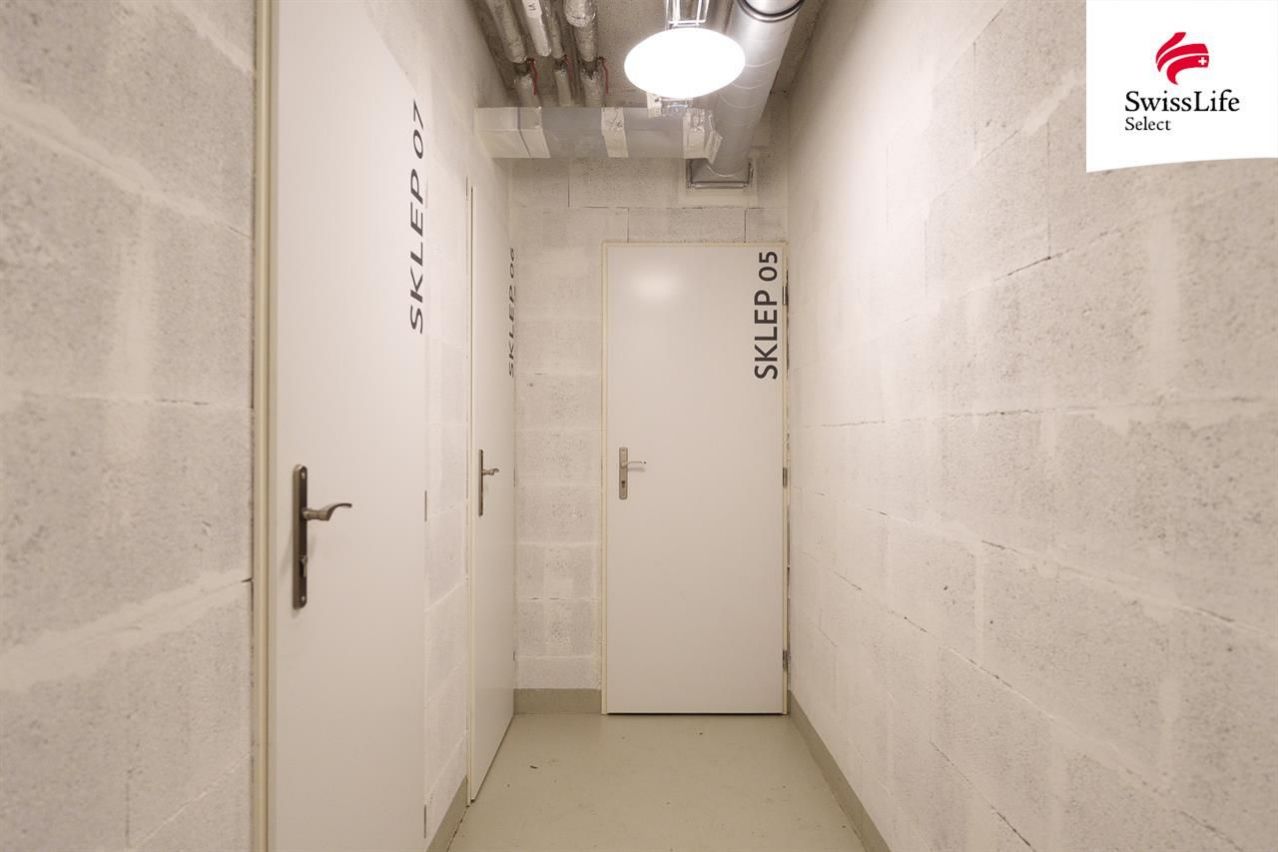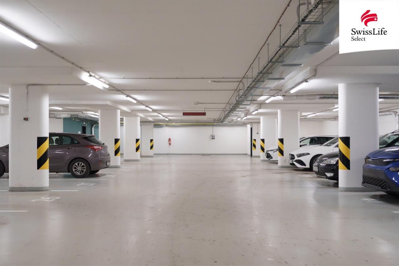 K bytu náleží sklepní kóje pro uložení sezónních věcí a parkovací stání přímo v domě, což je v této lokalitě výrazná výhoda.