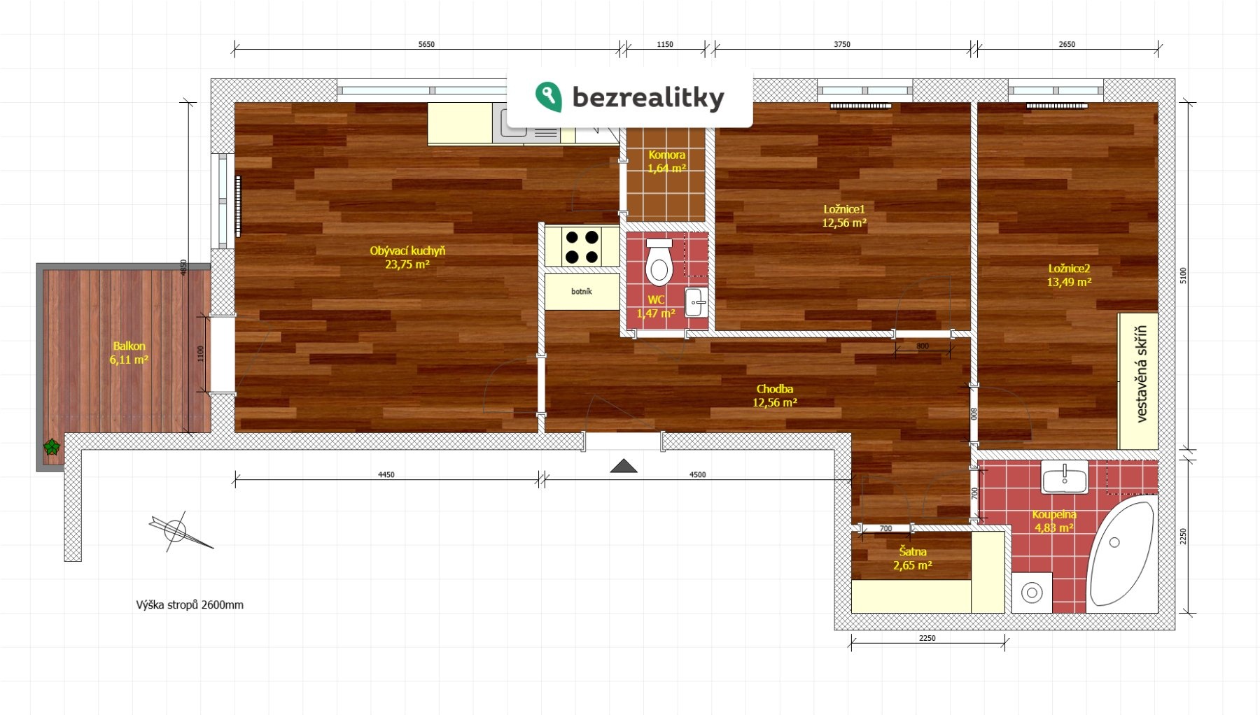 | Dispozice/podlahová plocha: | 3+kk/82 m² |