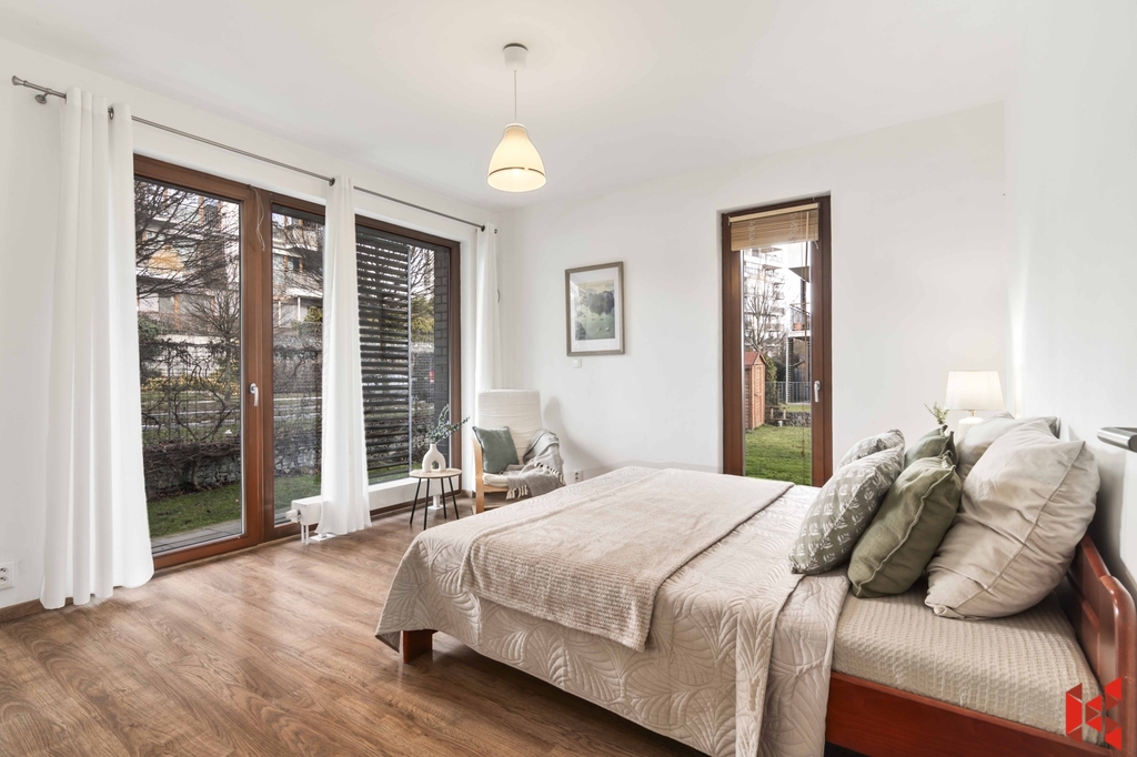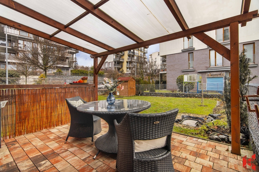 Hledáte bydlení, které kombinuje komfort moderní novostavby s benefity rodinného domu? Líbilo by se Vám najít domov tam, kam se nechodí jen přespávat, ale kde se skvěle žije, sportuje i odpočívá? Nabízíme k prodeji výjimečný byt v atraktivní lokalitě Hrdlořezy, v těsném sousedství Jarova a Žižkova. Je ideální volbou pro rodinu nebo náročné zájemce, kteří ocení příjemný byt s balkonem, terasou a vlastní zahradou. Dominantou bytu je prostorný obývací pokoj s kuchyňským koutem a přímým vstupem na terasy a zahradu. Najdete zde dostatek místa pro relaxaci, k bezpečným dětským hrám nebo třeba venkovnímu posezení s grilem. Máte-li domácí mazlíčky, ti jistě venkovní prostor ocení také. Zahrada je rovněž přístupná ze všech zbývajících pokojů. Byt je útulný, plný světla, naplněn pozitivní energií. Nechybí zahradní domeček, veliký sklep a dvě garážová stání.