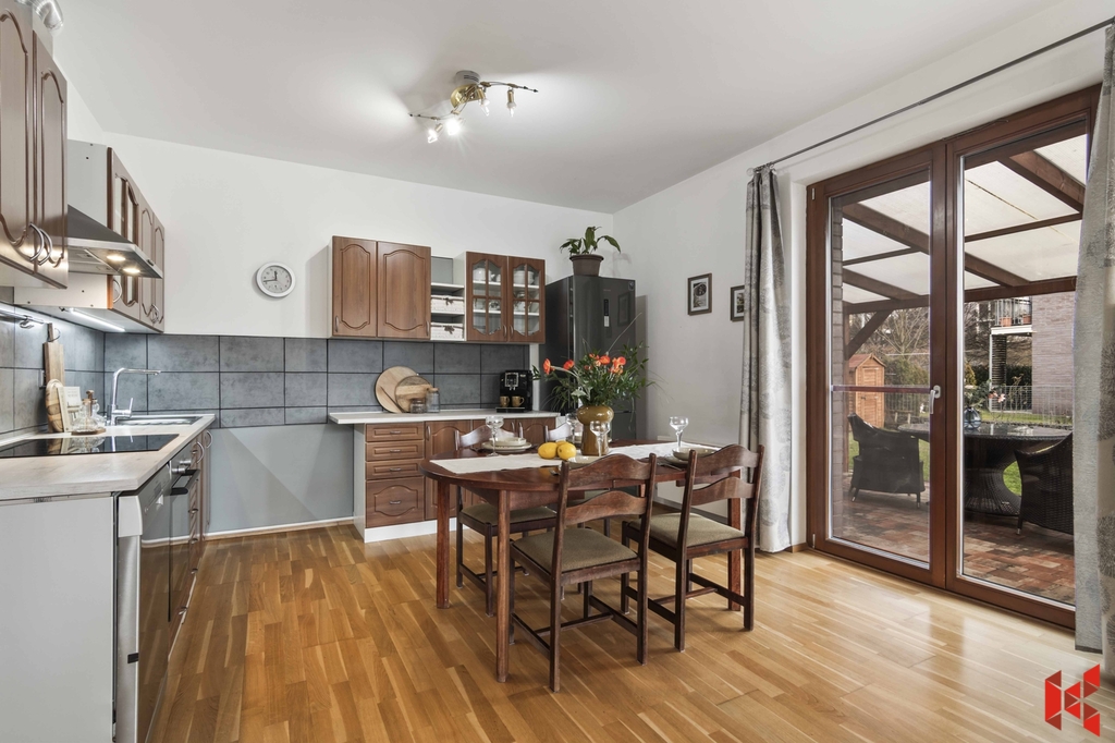 ✔ Praktiky řešenou kuchyň, kam se vejde i jídelní stůl