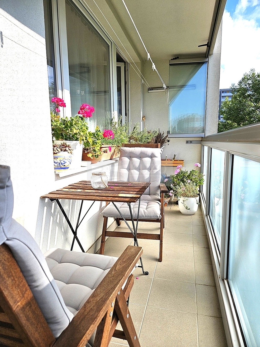 Byt sestává ze vstupní chodby (8,3 m2), prostorného obývacího pokoje s kuchyňským koutem (31,8 m2), 2 neprůchozích pokojů (12,5 m2 a 11,6 m2), koupelny (3,7 m2), WC (1,1 m2), komory (2,4 m2) a lodžie (7 m2). Byt prošel pečlivou, nákladnou, promyšlenou rekonstrukcí, která v sobě spojuje moderní styl, funkčnost i příjemnou domácí atmosféru. Majitelé věnovali pozornost každému detailu. Díky tomu vzniklo i mnoho úložných řešení. V části obývacího pokoje vznikla elegantní vestavěná místnost, kterou lze využít jako pracovnu nebo ložnici. Na základě tohoto chytrého řešení se z bytu stalo pomyslné 4+kk - se dvěma samostatnými dětskými pokoji a útulnou ložnicí/pracovnou pro rodiče. Každý člen rodiny má tak dostatek místa pro své soukromí, a zároveň je tak i dostatek otevřeného prostoru pro společné chvíle. Velkou devízou bytu je také možnost využívat skladový prostor 9,9 m2 s denním světlem a otevíracím oknem v posledním patře domu, který mají majitelé pronajatý od SVJ na dobu neurčitou.