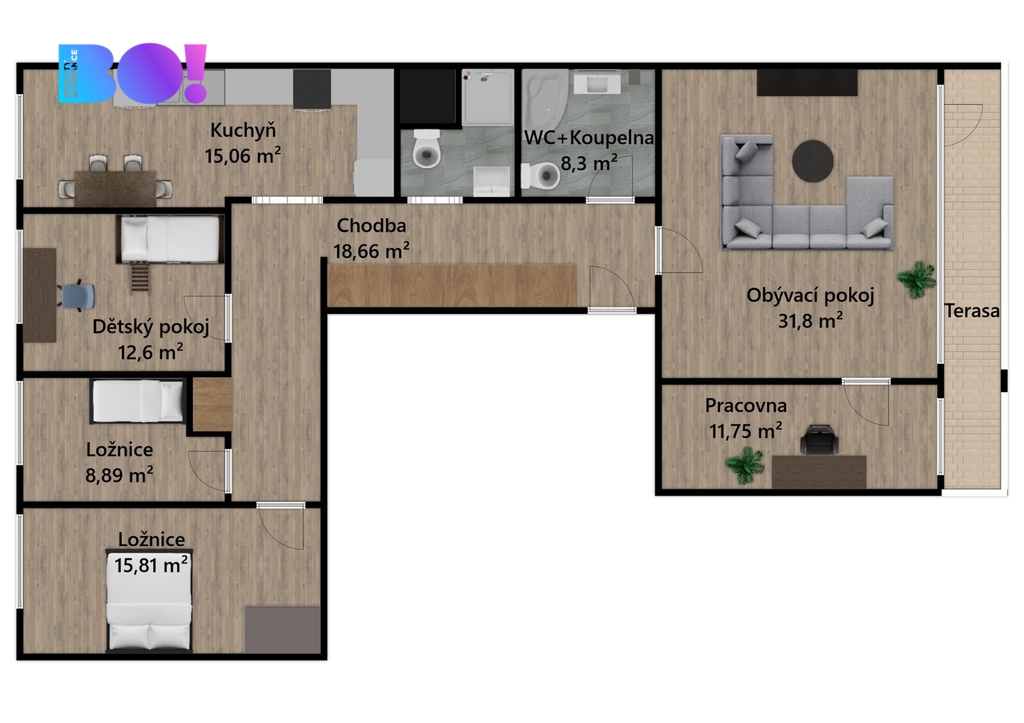 | Dispozice/podlahová plocha: | 4+1/123 m² |