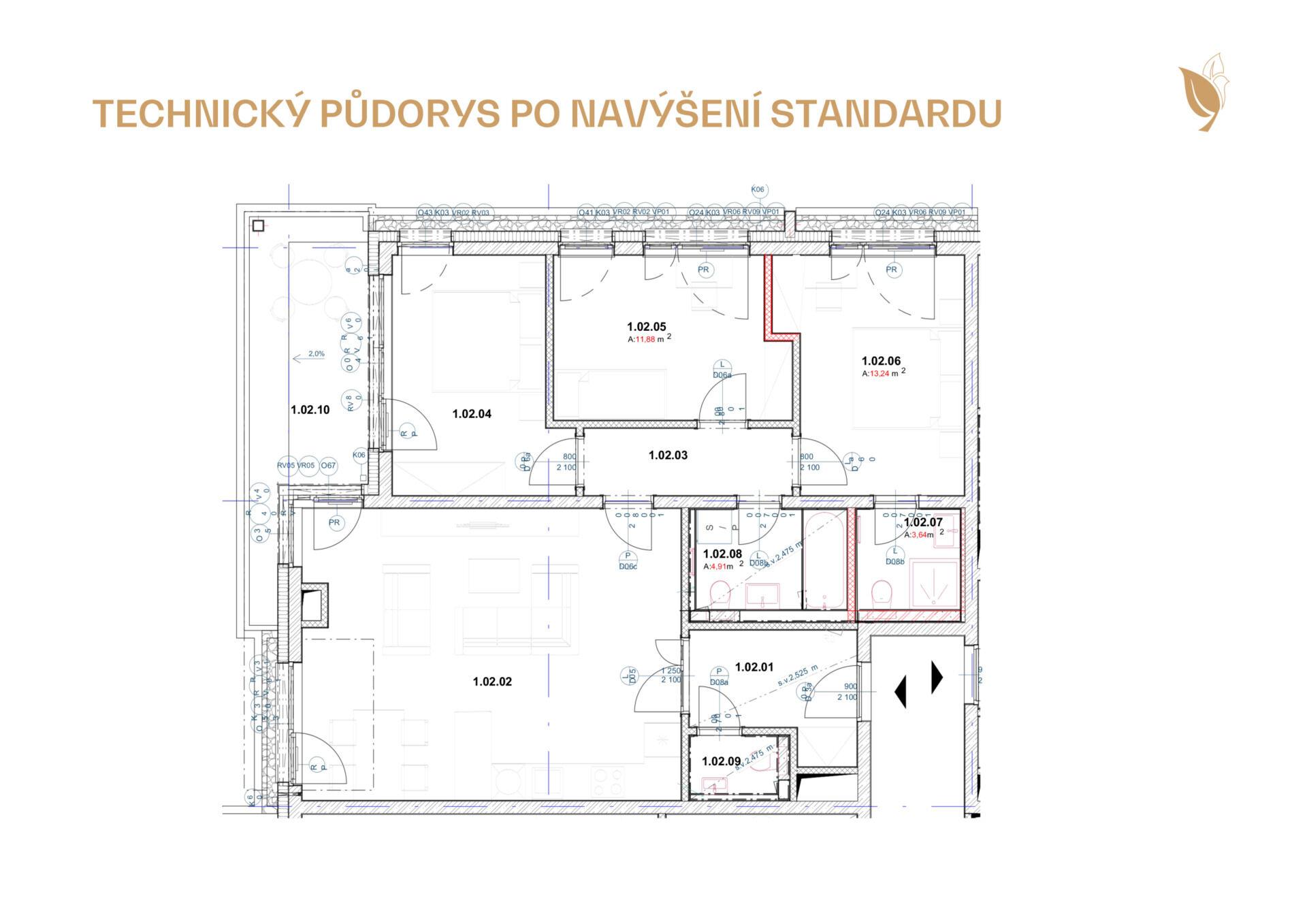 - byt 4+kk o velikosti 101,4 m²