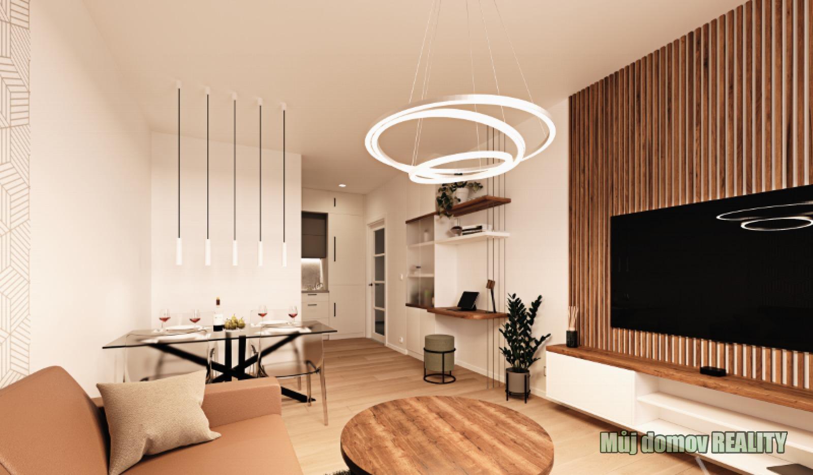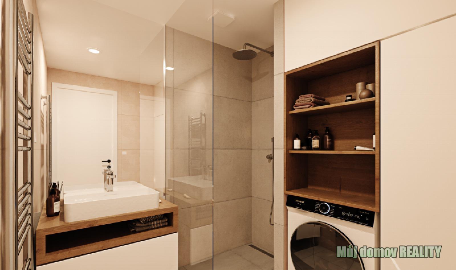 * provedení **fit-out** (moderní koupelna, příprava na kuchyňskou linku)