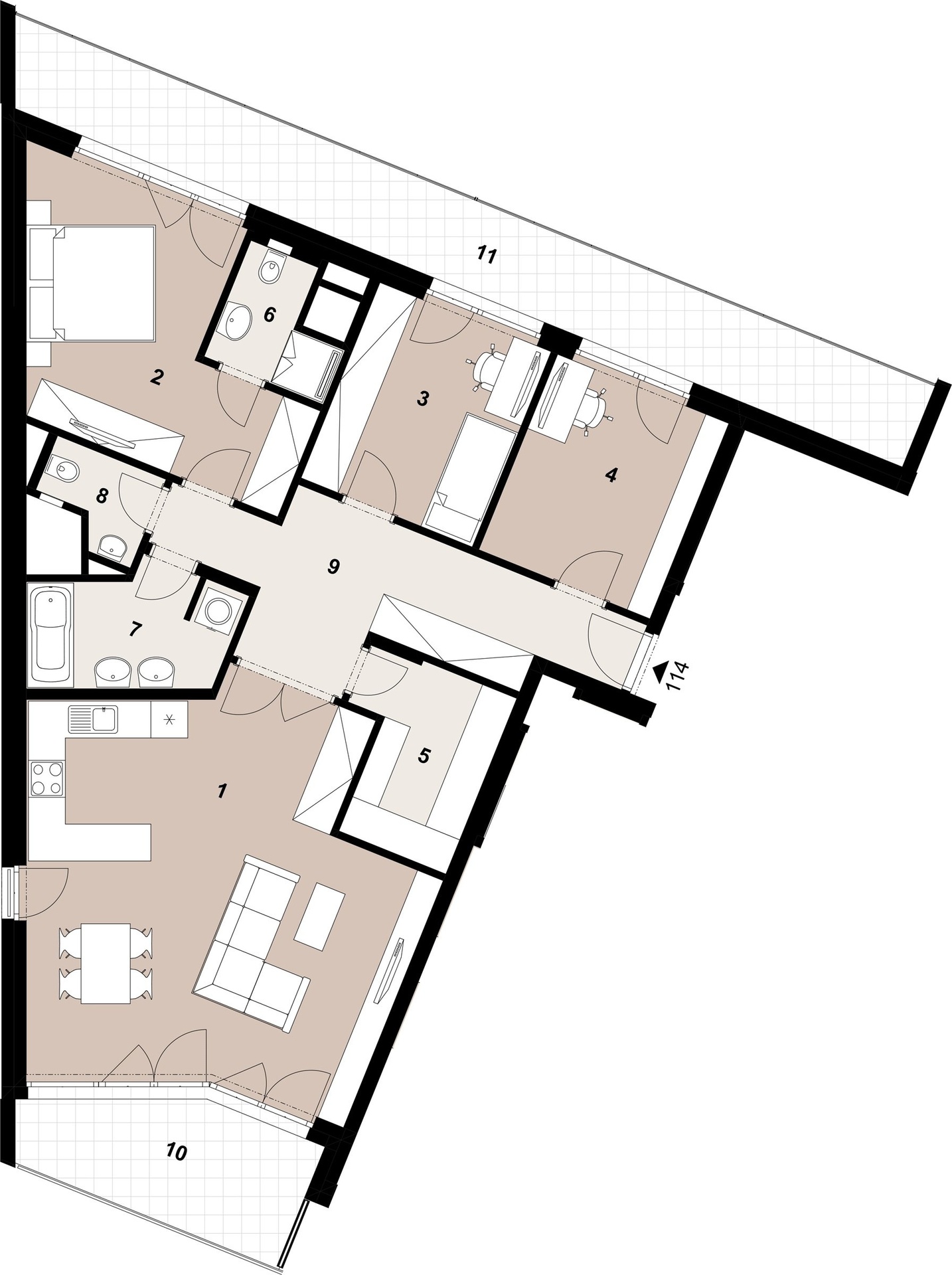 | Dispozice/podlahová plocha: | 4+kk/107 m² |