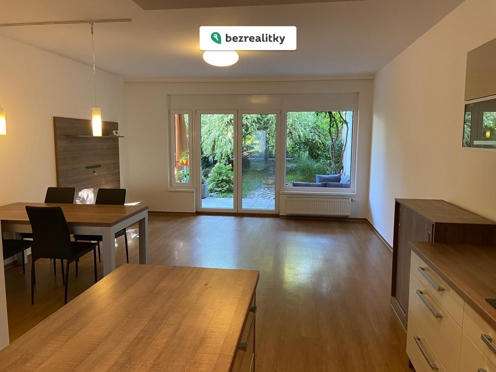 Obytné patro: obývací pokoj s jídelnou a plně vybavenou kuchyní (cca 36 m², kompletní spotřebiče) a přímým vstupem na vzrostlou zahradu s terasou 111 m²; dále samostatné WC a ložnice 12 m² s en-suite koupelnou (sprcha + WC).