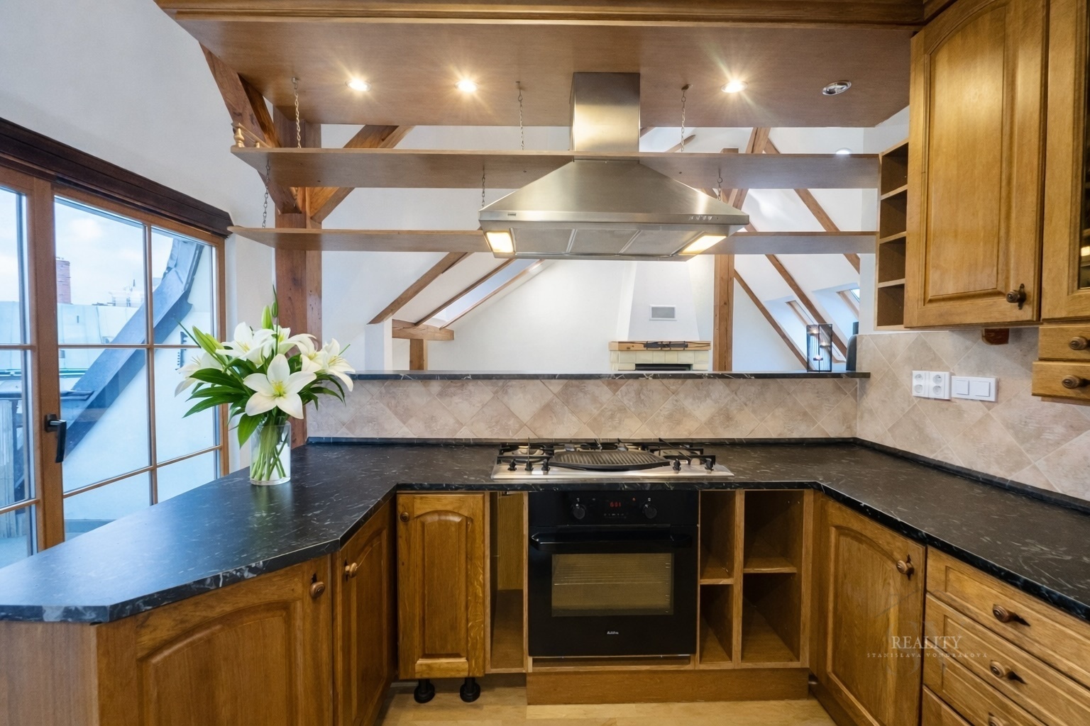 Výjimečný mezonetový byt 4+kk s krbem a terasou v srdci Starého Města
