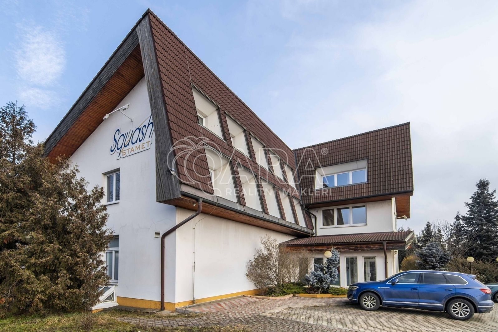 Tento samostatně stojící objekt kombinuje sportovní zázemí, rozsáhlé administrativní prostory a relaxační zónu na velkorysém pozemku o celkové výměře 4543m2.