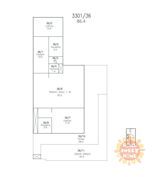 | Dispozice/podlahová plocha: | 3+kk/86 m² |