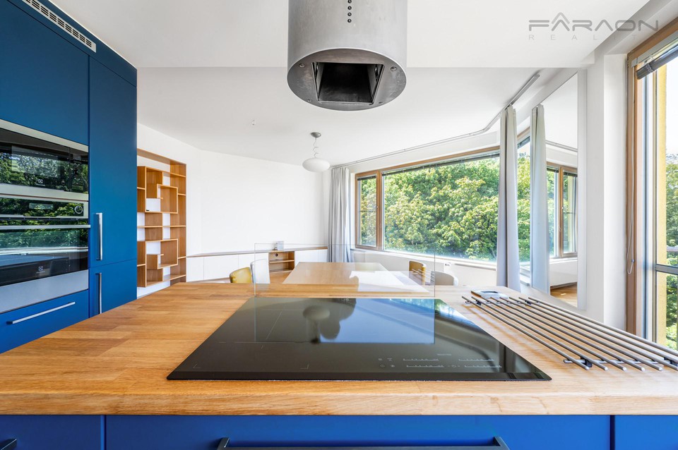 Moderní, mimořádně prostorný a slunný klimatizovaný byt 4+kk (119,5 + dva balkony - 125,8 m²) se dvěma balkony a unikátními výhledy na panorama Prahy, včetně Pražského hradu a Vítkova, stejně jako do zeleně přilehlého parku Parukářka. Nachází se v 5. nadzemním podlaží rezidenčního projektu z roku 2010 s vysokým standardem zabezpečení – 24/7 recepcí, kamerovým systémem a soukromým dětským hřištěm ve vnitrobloku. Rezidenti zde mají zajištěn maximální komfort a pocit bezpečí. Součástí bytu je sklep a parkovací stání v suterénu domu. Klidná rezidenční část pražského Žižkova pak umocňuje příjemnou atmosféru pro moderní a pohodlné bydlení.