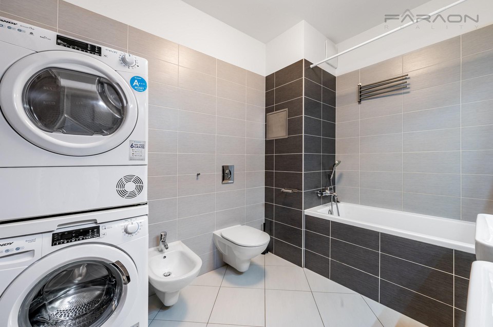 Byt je vybaven kvalitním vestavěným nábytkem na míru, který poskytuje velkorysé množství úložných prostor. Součástí standardu je klimatizace a kuchyňská linka v nadčasovém designu, kompletně osazená vestavěnými spotřebiči značky Electrolux – myčka, indukční varná deska, závěsný odsavač par, parní a mikrovlnná trouba, vinotéka a lednice s mrazákem. V koupelnách je použita velkoformátová dlažba s podlahovým vytápěním. Samozřejmostí jsou hliníkově-dřevěná eurookna s izolačními skly, bezpečnostní vstupní dveře a LED osvětlení ve všech místnostech. K dispozici je také pračka a sušička. Vytápění bytu je řešeno centrální kotelnou v domě. Kupní cena zahrnuje 1 parkovací stání a sklep umístěné v -1. podlaží domu s výtahem.