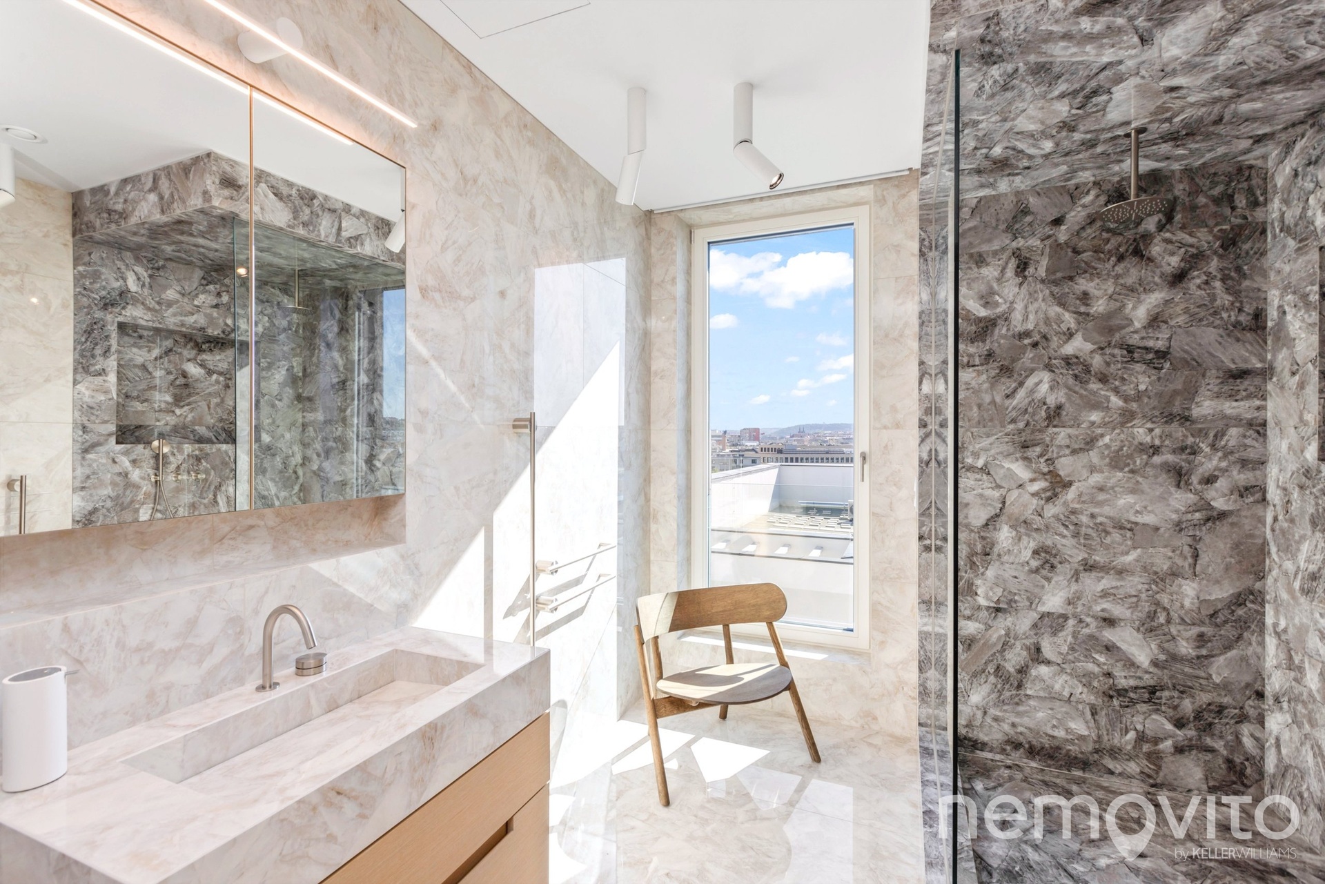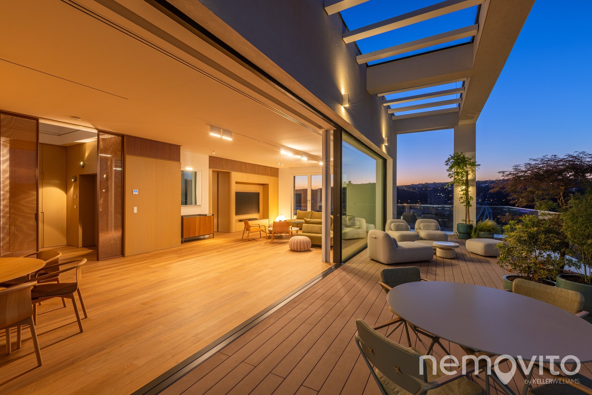 The price also includes complete equipment and furniture, including all joinery elements, the above-standard apartment was designed at a cost of tens of millions CZK. The wooden floors are heated, thermal comfort is provided by air conditioning and recuperation, and an interesting element is also a 17-meter-long window to the terrace, which opens with its own motor. The unique apartment is the responsibility of the development company Daramis. If you are interested in more information about the listing (more photos, exact specifications, floor plan), I will be happy to send you a link to a separate website for the apartment.