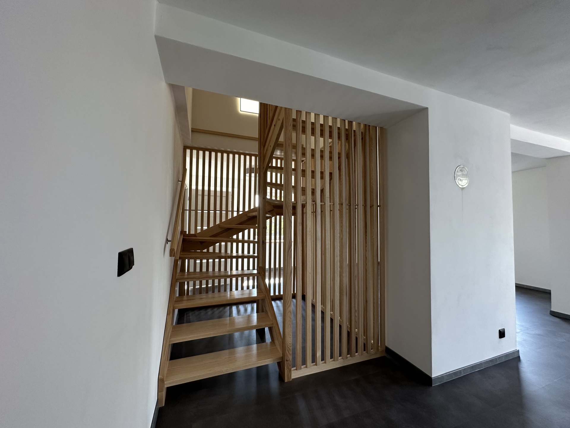 Bytová jednotka má samostatný vstup do domu. V přízemí se nachází vstupní prostor 15m² s dostatkem úložného místa (např. i kočárku, kola, motorky, apod..), do obytné části v 2.NP vede prostorné schodiště s předsíňovou částí 16m², která je oddělená dveřmi za kterými se nachází prostorný obývací pokoj s kuch. koutem 71m², balkon, komora s pračkou Siemens a sušičkou Bosch, ložnice 17m² koupelna s vanou i sprchovým koutem, samostatné WC. Nová kuchyňská linka je vybavena vestavnými spotřebiči (indukční varná deska, horkovzdušná. el. trouba s grilem, mikrovlná trouba, lednice s mrazákem, digestoř vše Whirlpool)