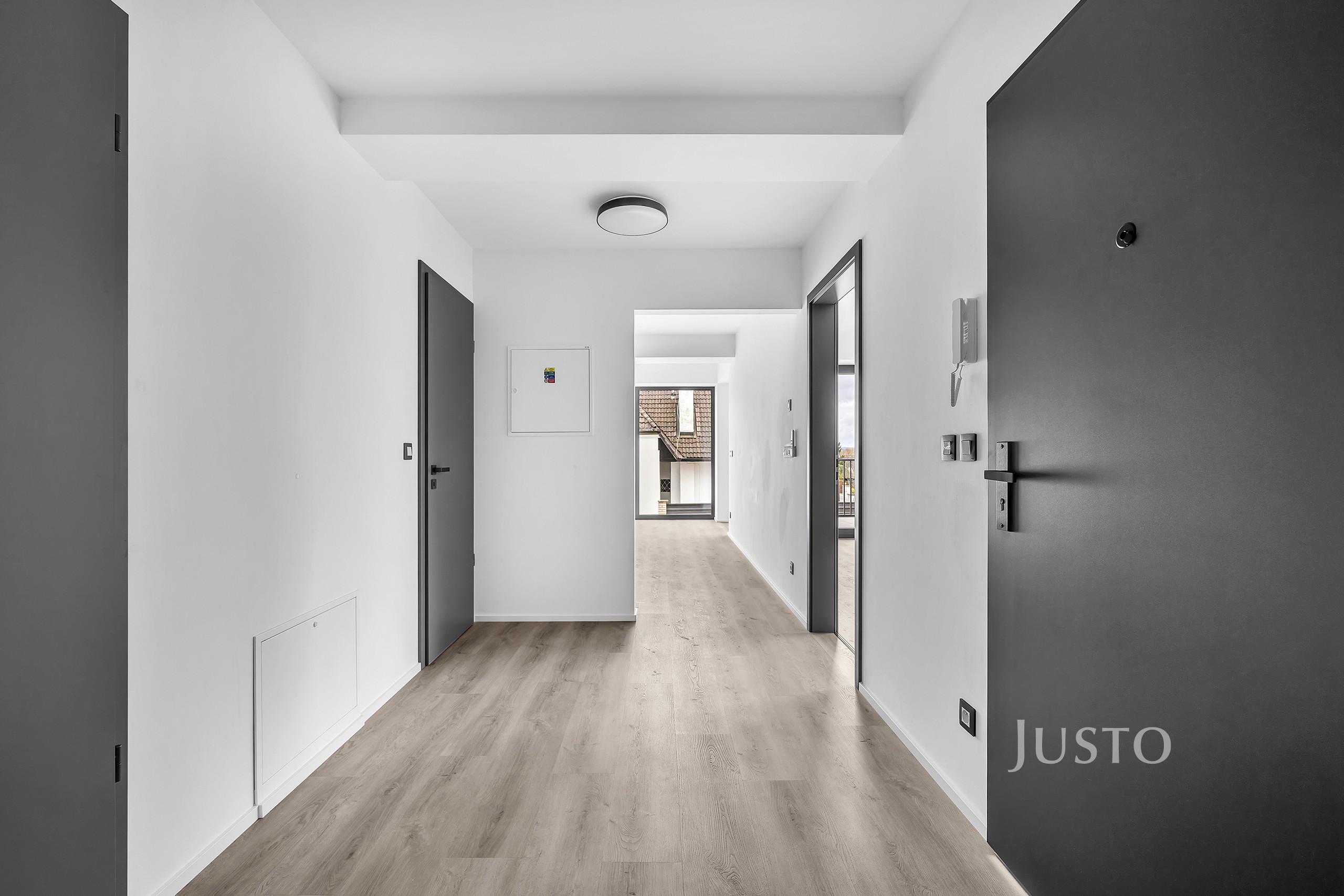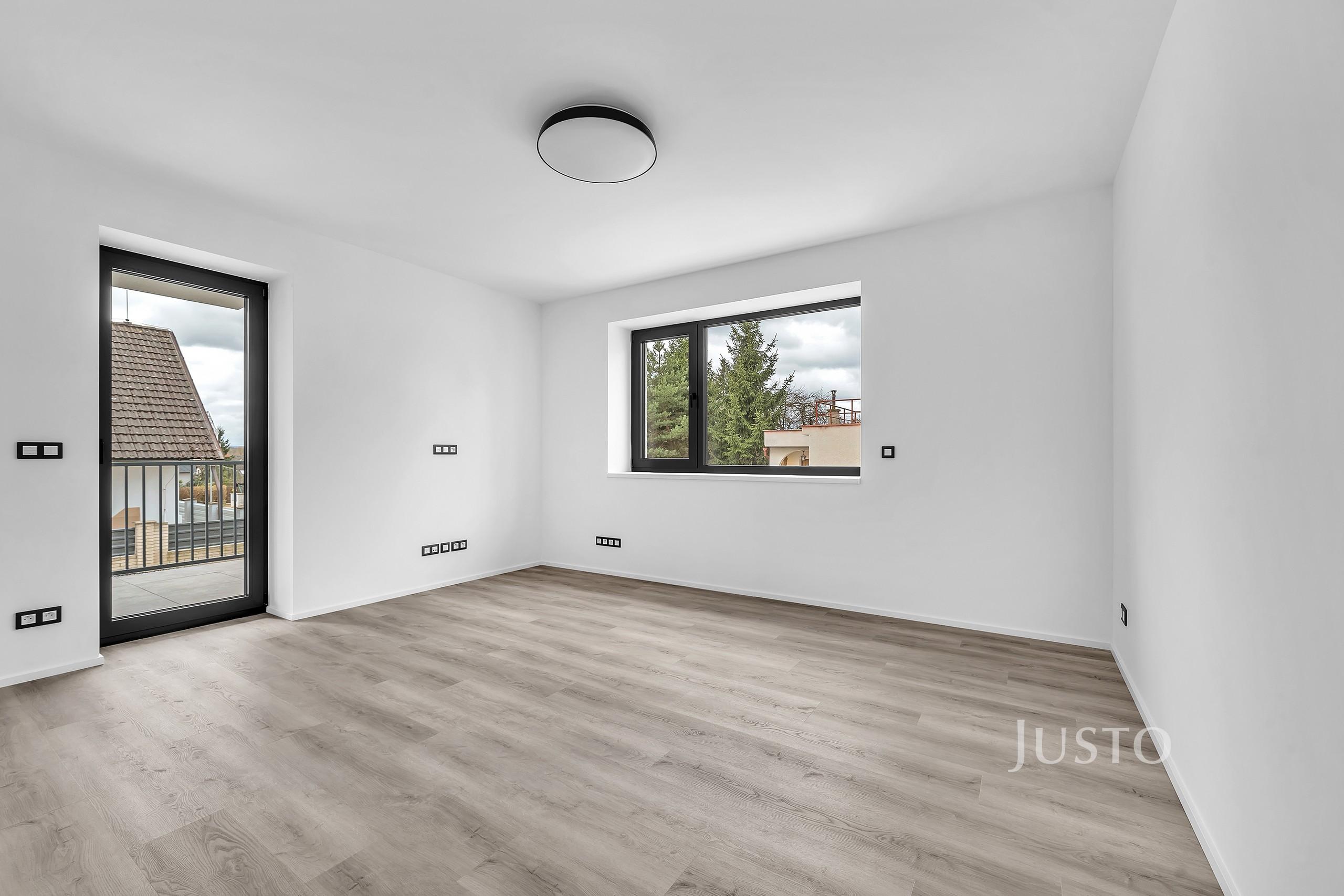 Nabízíme k pronájmu prostorný byt 3+kk o celkové užitné ploše 79,6 m² s terasou 4,5 m² v novostavbě na adrese Na proutcích 239, Praha 4 – Šeberov. Byt se nachází v 1. nadzemním podlaží samostatně stojícího domu v klidné části obce. Součástí pronájmu je také sklep o velikosti 4,5 m² a vlastní venkovní parkovací stání. Druhé parkovací stání lze pronajmout za částku 2.500Kč/měs.