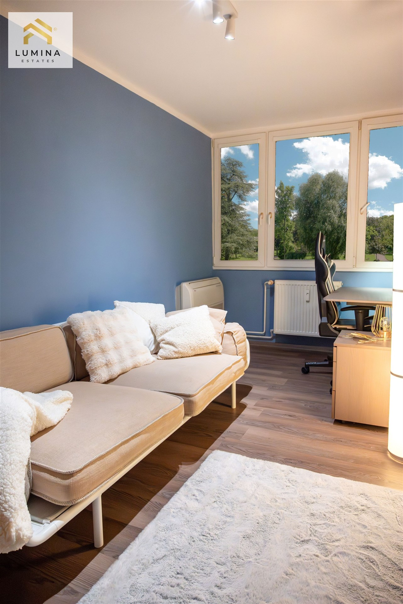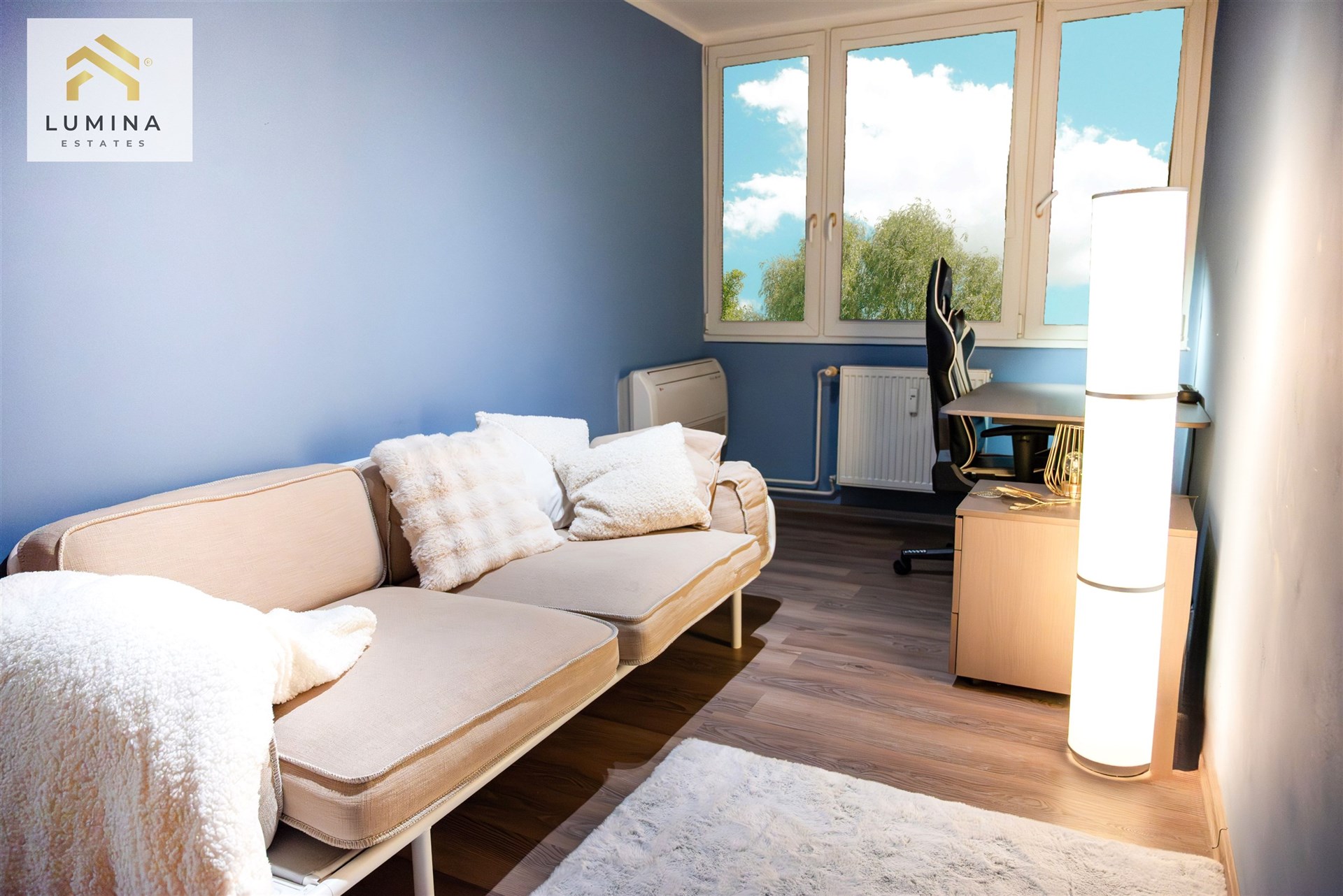 Krom poměrně velký pokojů,(všechny tři pokoje jsou klimatizované, okna ložnice a pracovny jsou orientována na sever, obývací pokoj s kuchyňským koutem na jih.), kdy obývací s kuchyní tvoří společný komunikační prostor, určitě uvítáte zasklenou lodžii o velikosti 7 m2, která poskytuje zónu relaxace.