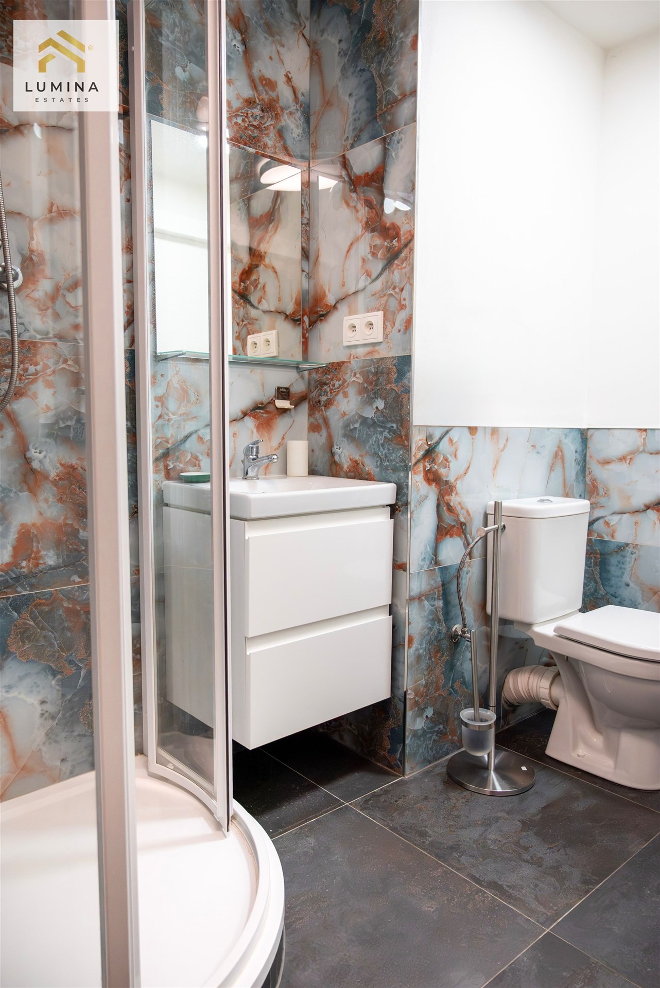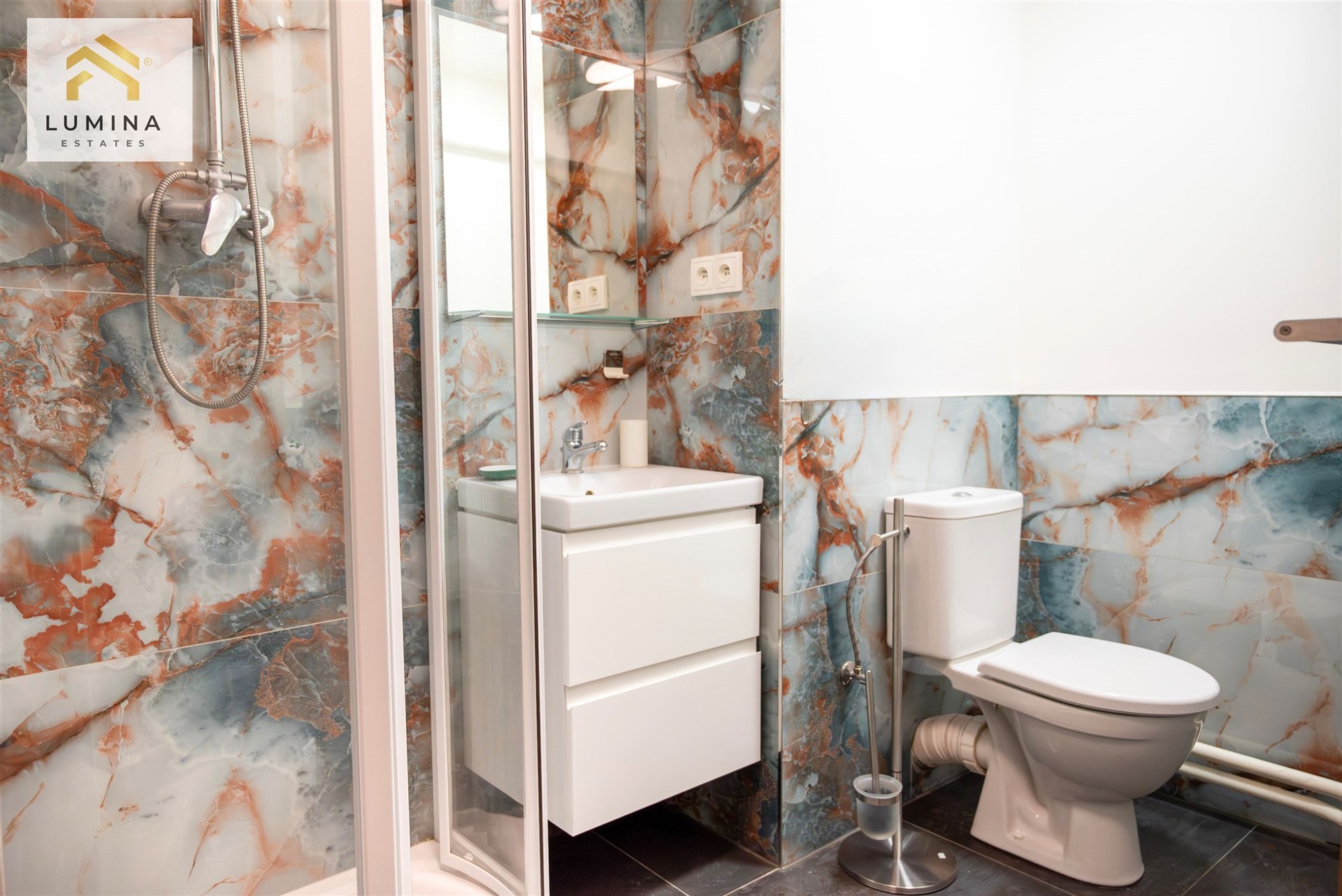Koupelna s pojená s WC prošla nadstandardní rekonstrukcí a odráží se v ní relax a elegance.